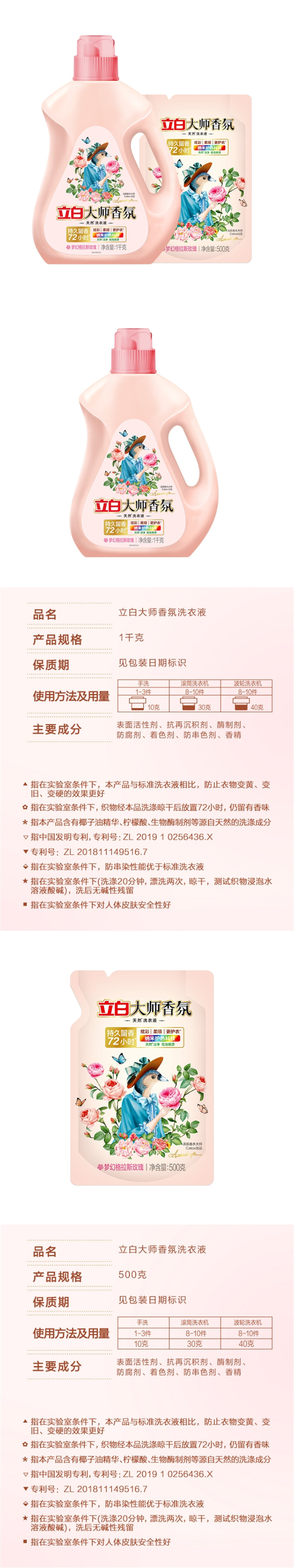 立白大师香氛洗衣液玫瑰香味家用实惠装 【3斤装】大师液1kg*1瓶+500g LBZH0006 套装