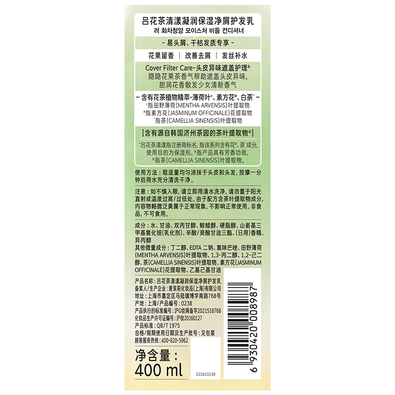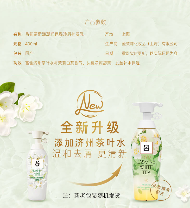 吕(Ryo)花茶吕白茶清漾凝润保湿净屑护发素400ml 花茶吕护发素400ml