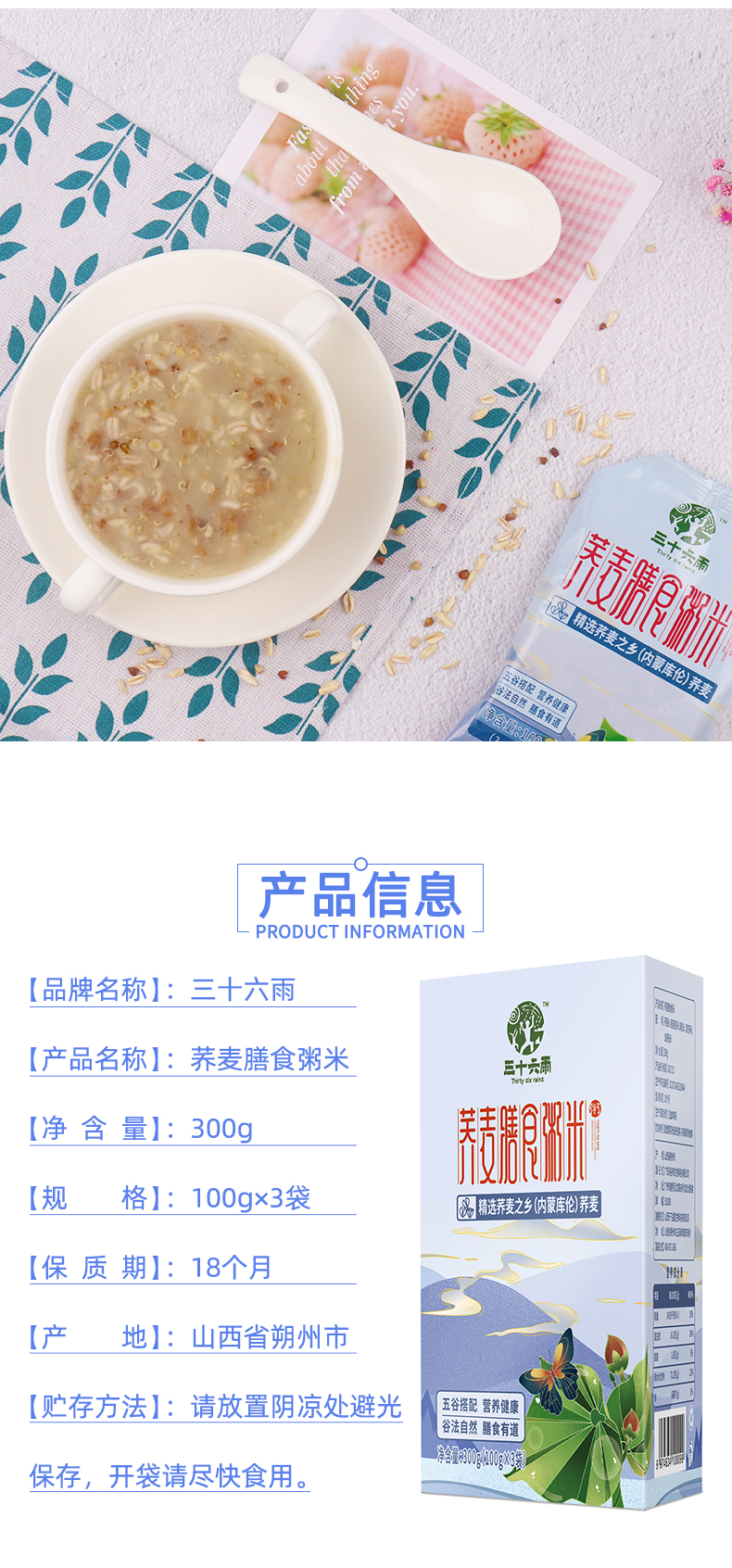 三十六雨 荞麦膳食粥米300g*2(单位:盒) 蓝色