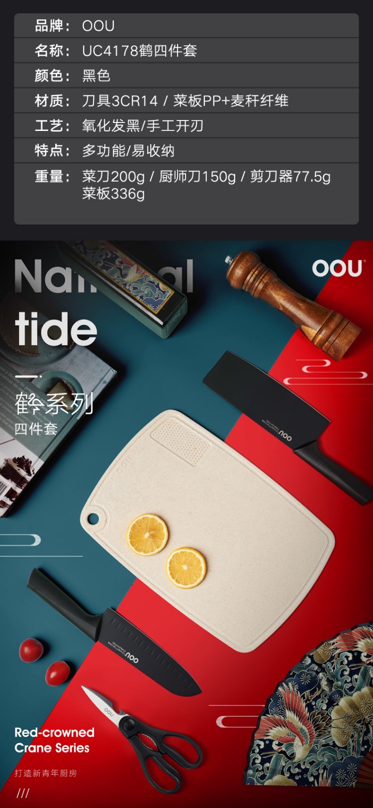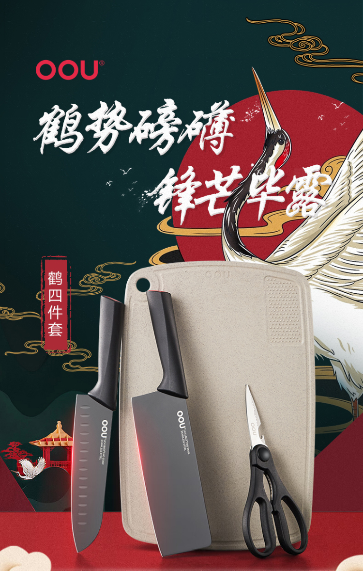 OOU UC4178 四件套 鹤系列刀具套装 黑色(单位:套)