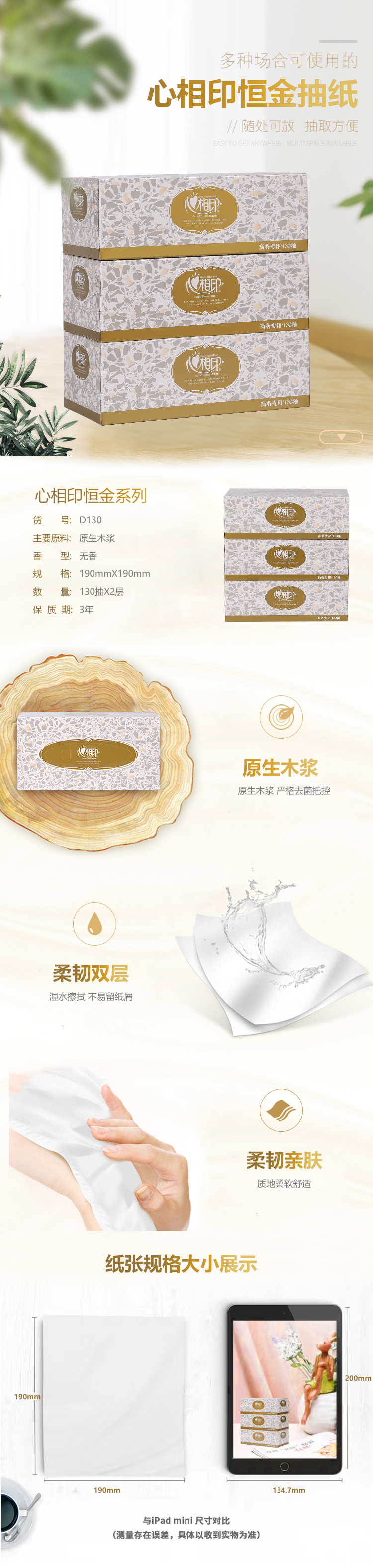 心相印(Mind Act Upon Mind)商用盒装纸(恒金)130抽3盒/提D130(单位:提) 混色