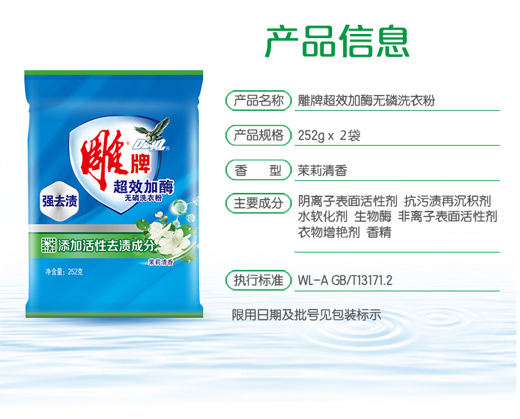 雕牌超效加酶洗衣粉252g*2袋 白色