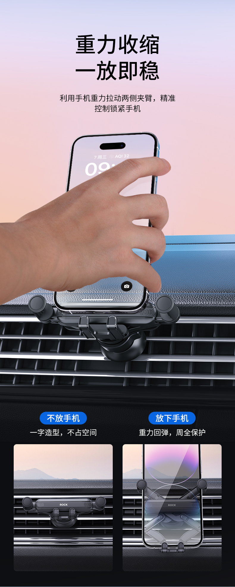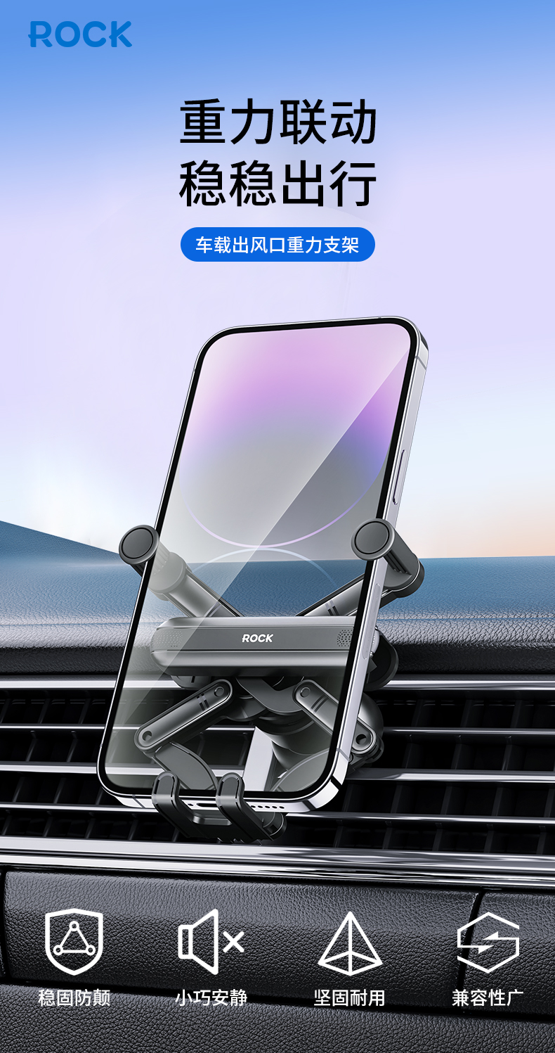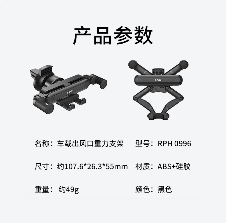 洛克(ROCK)ROCK 车载出风口重力支架 RPH0996(单位:个) 黑色
