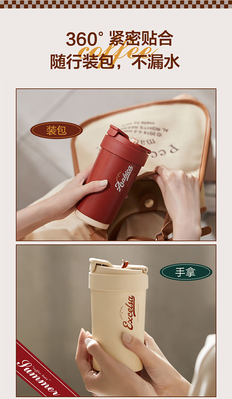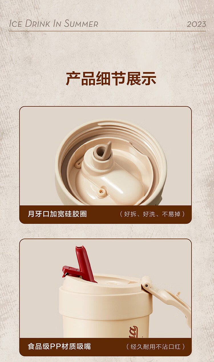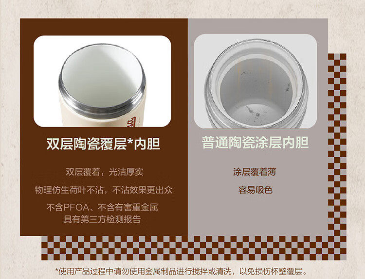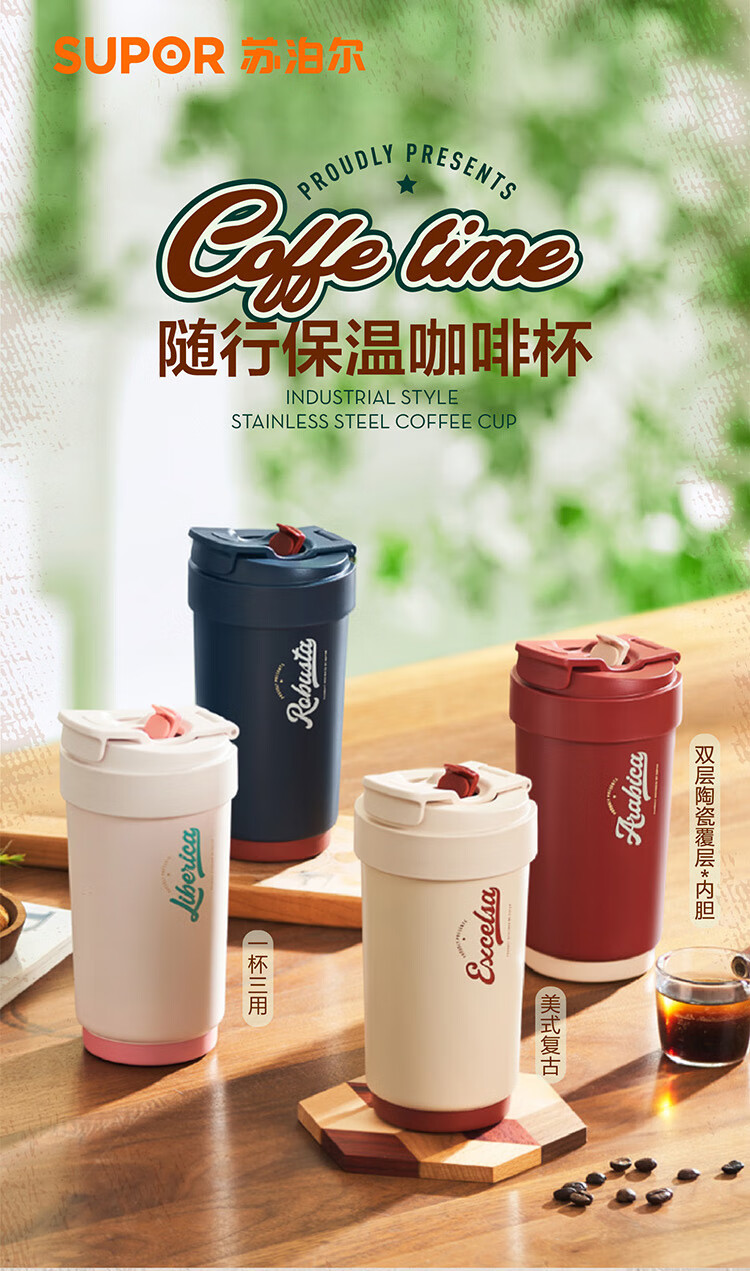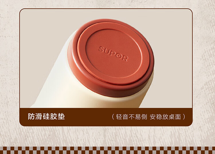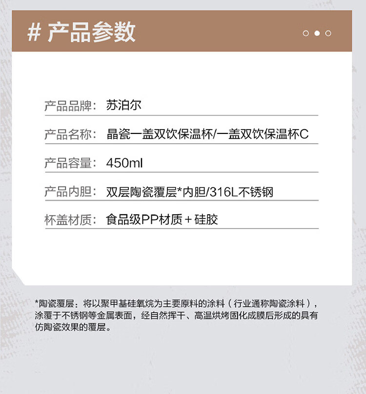 苏泊尔(SUPOR)咖啡杯-双层陶瓷覆层内胆450ML.晶瓷一盖双饮保温杯KC45KR10/个 羊皮纸色