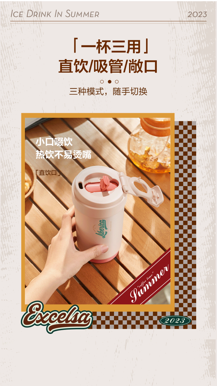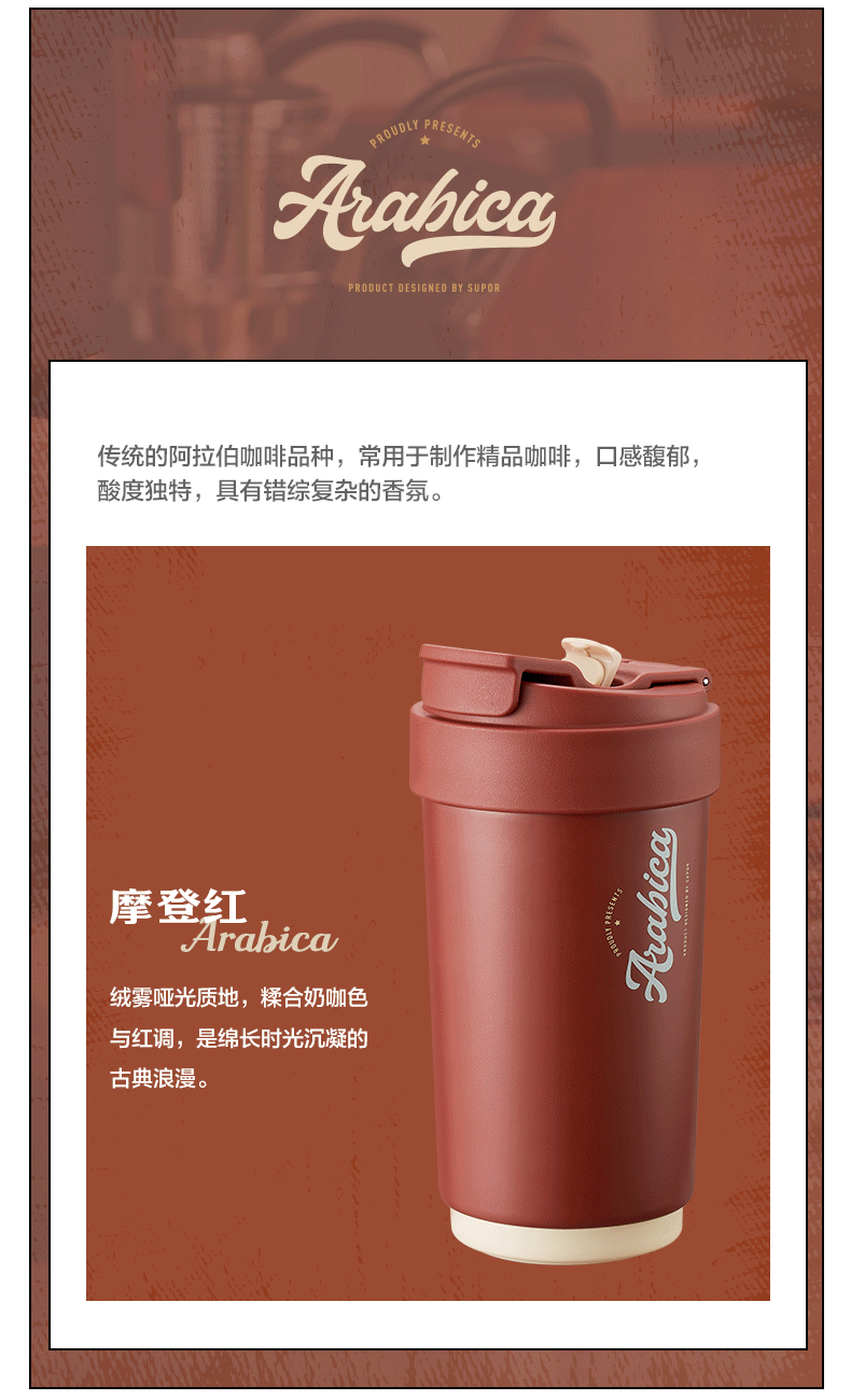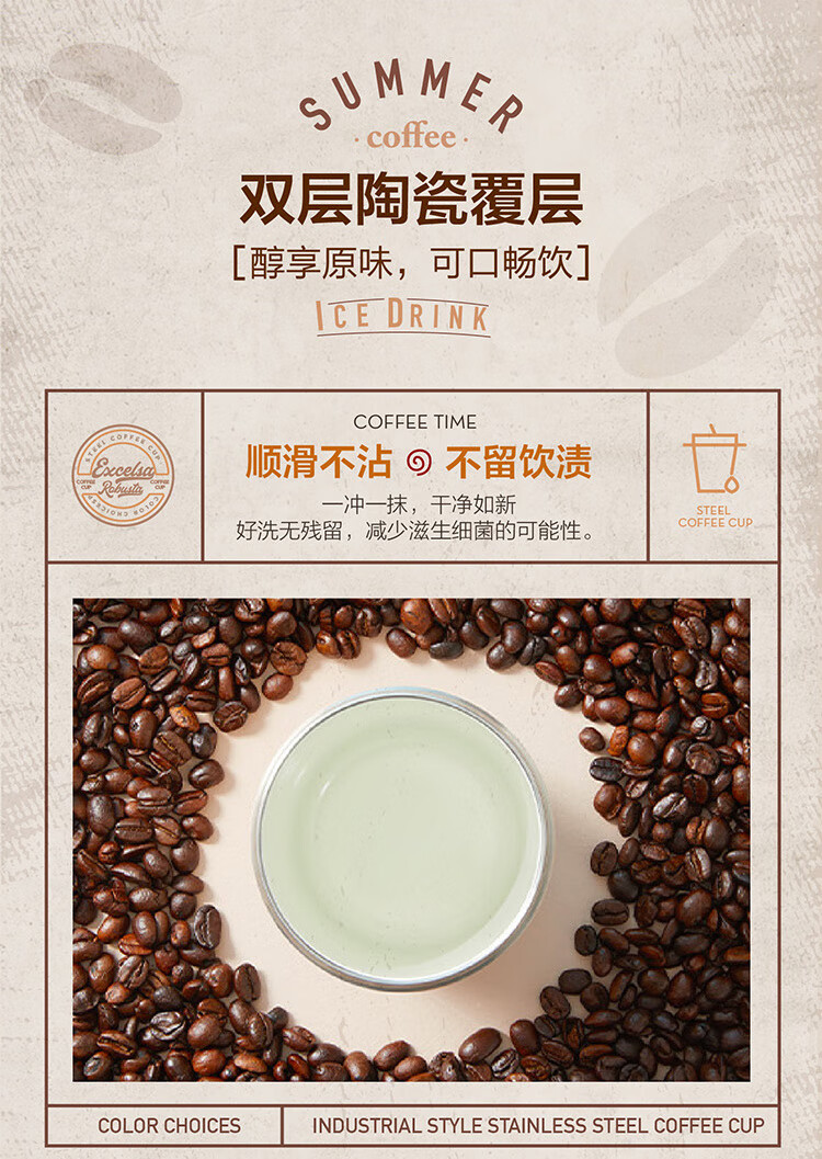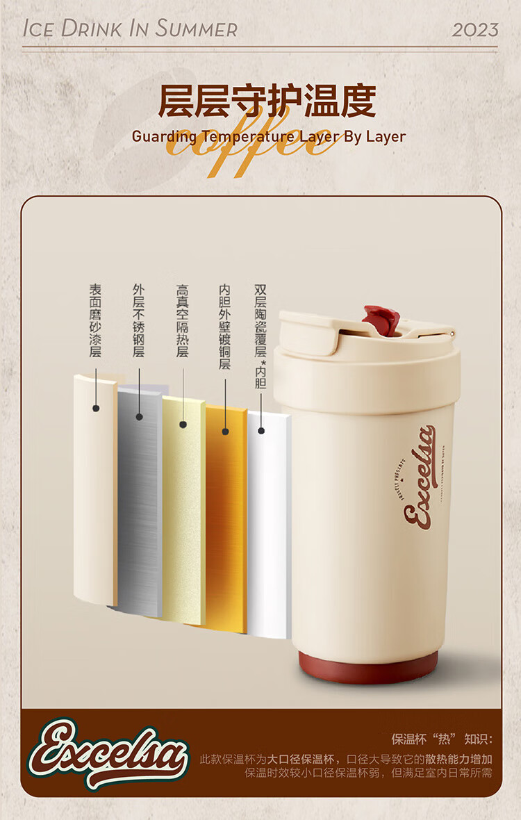 苏泊尔(SUPOR)咖啡杯-双层陶瓷覆层内胆450ML.晶瓷一盖双饮保温杯KC45KR10/个 羊皮纸色