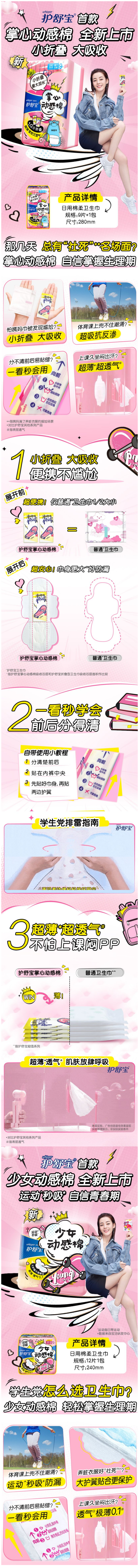 护舒宝少女动感棉240mm12片装*2包(单位:包) 混色