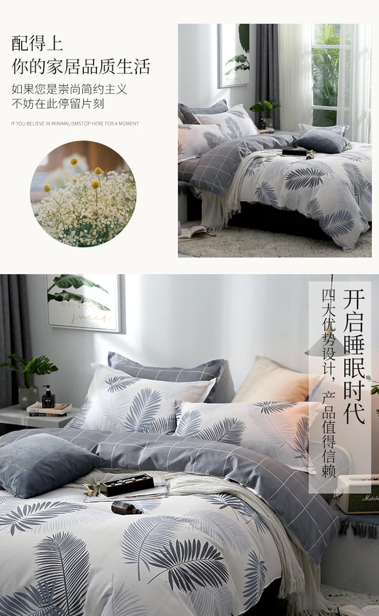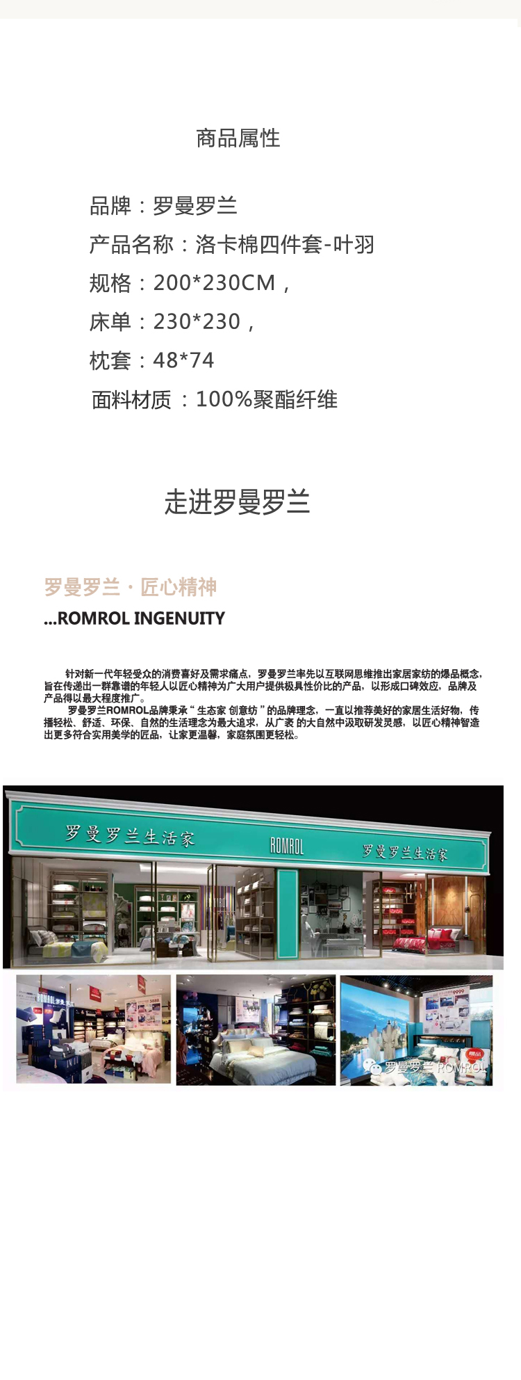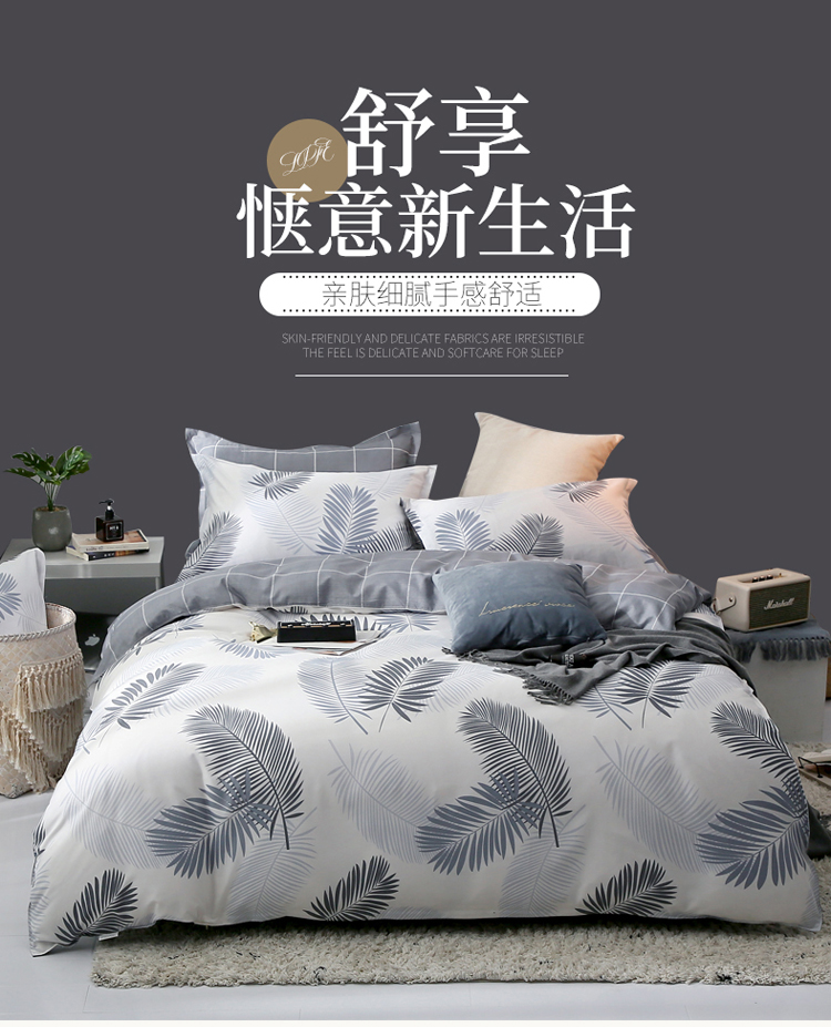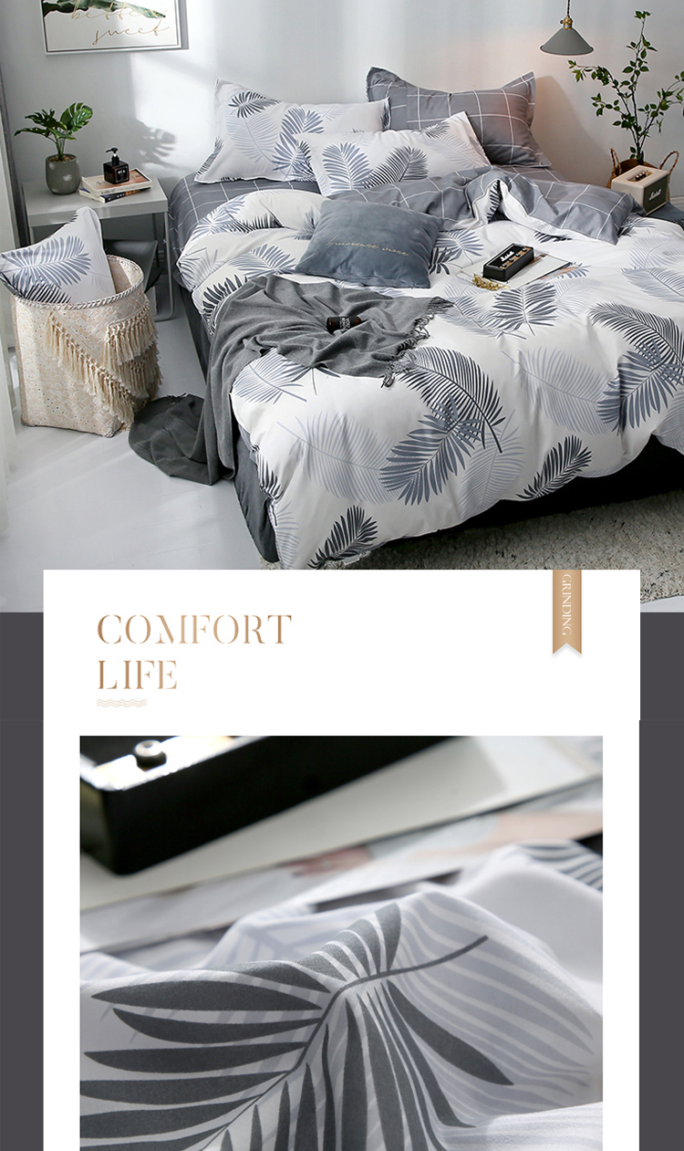 罗曼罗兰洛卡棉四件套-叶羽 200*230cm套 灰白色