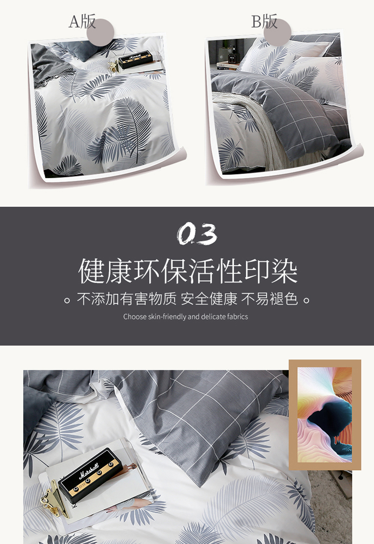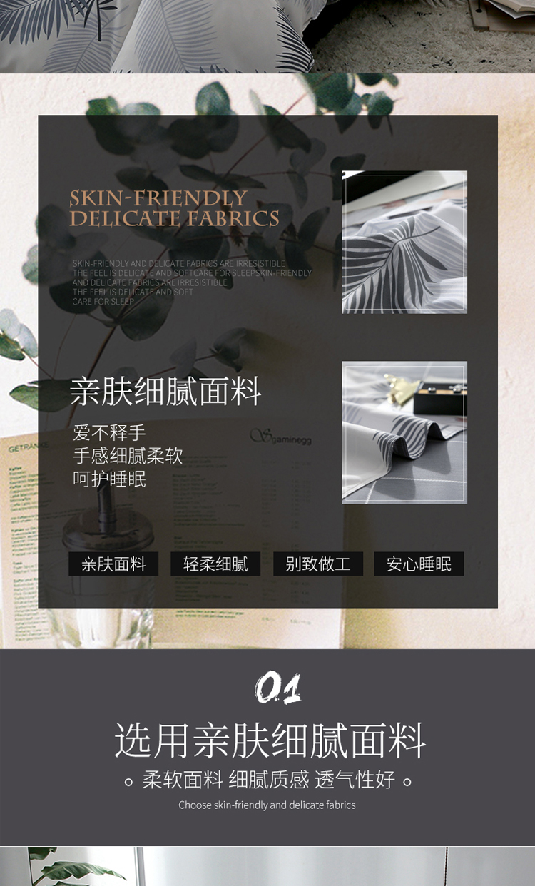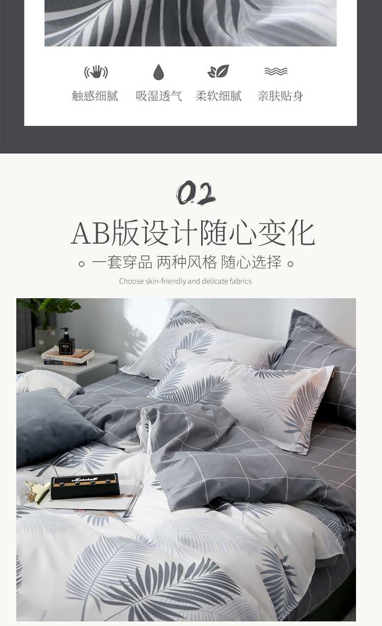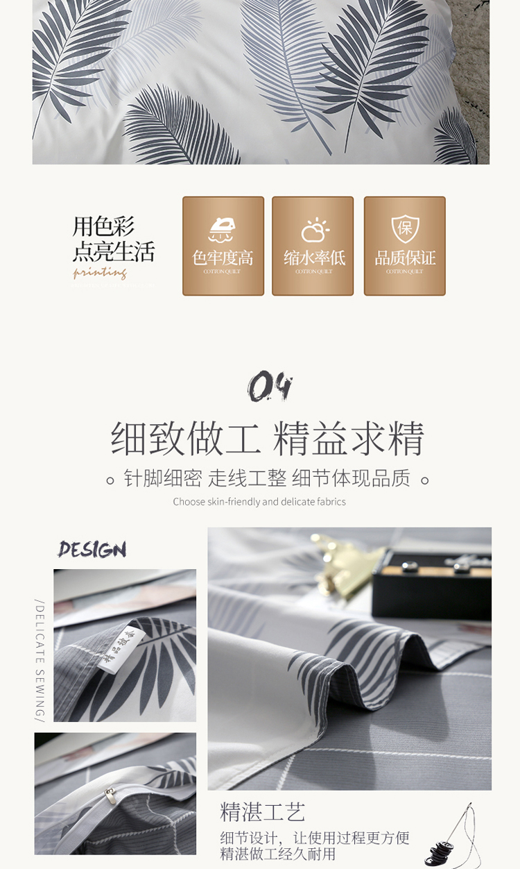 罗曼罗兰洛卡棉四件套-叶羽 200*230cm套 灰白色