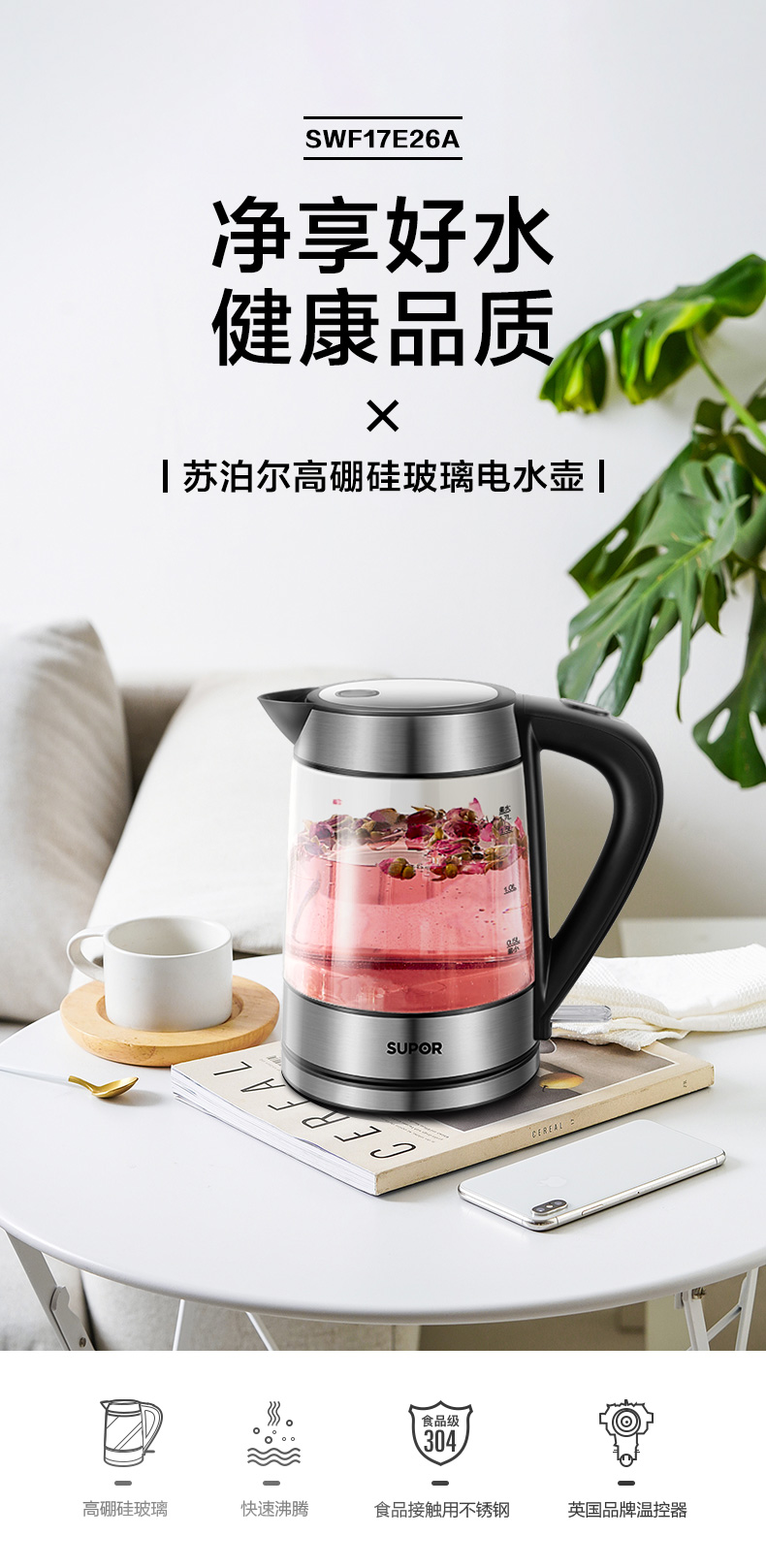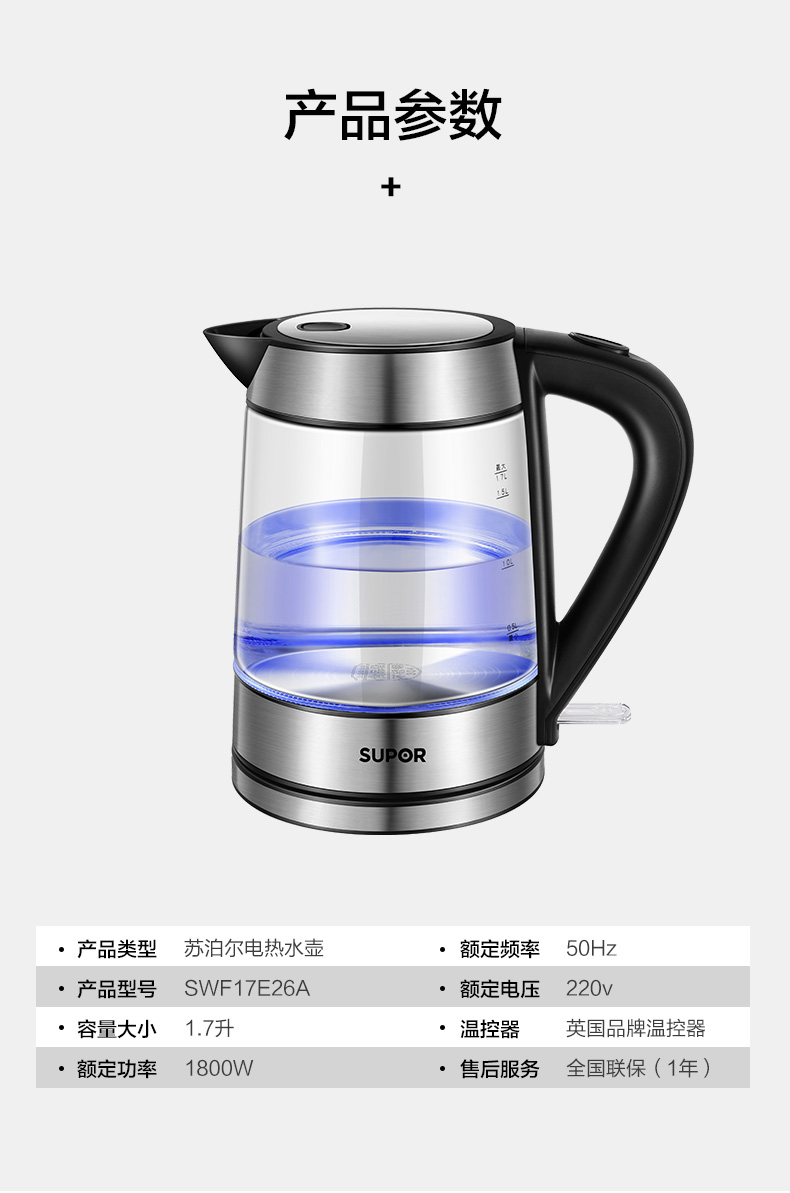 苏泊尔(SUPOR) SWF17E26A 1.7L 电水壶 灰色(单位:个)