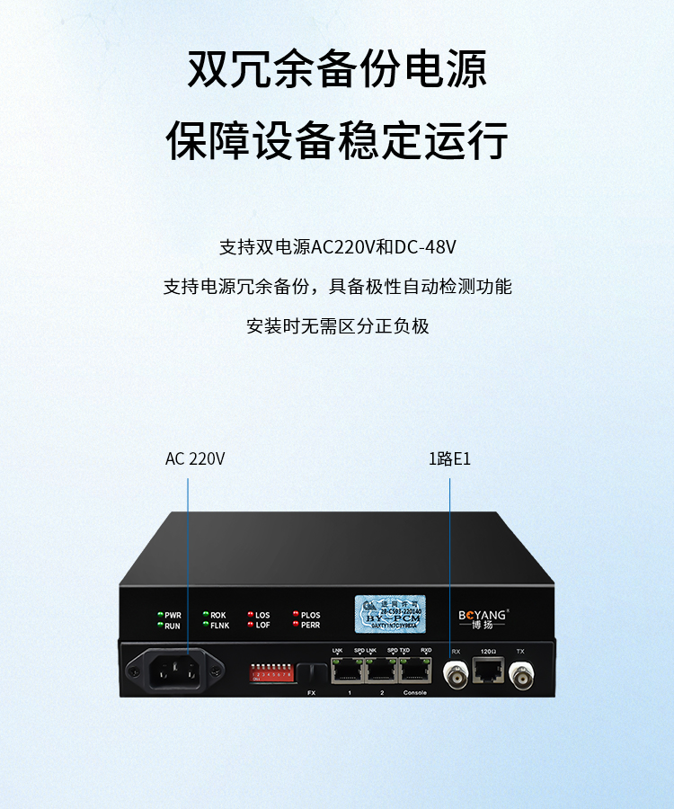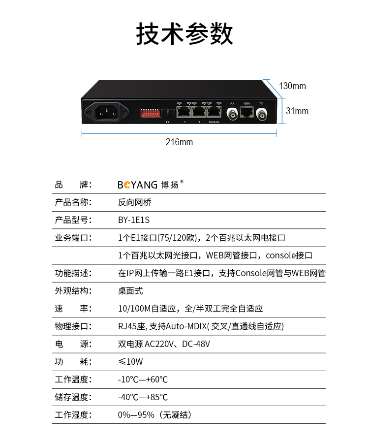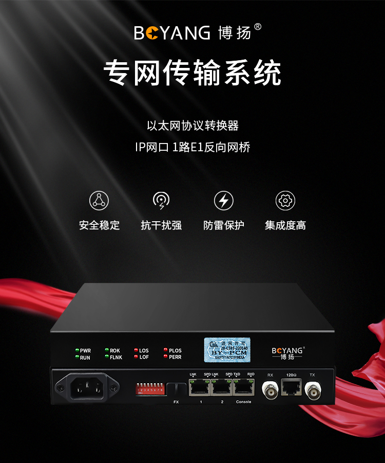 博扬(BOYANG)BY-1E1S IP网口 以太网转E1 反向协议转换器 单E1反向网桥 桌面式 1对价 黑色