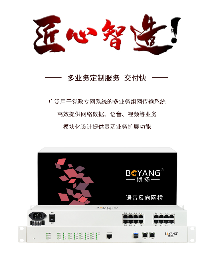 博扬(BOYANG)BY-16E1S IP网口 以太网转E1 反向协议转换器 16E1反向网桥 机架式 1对价 白色