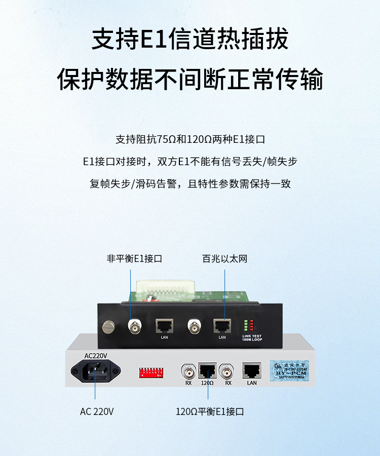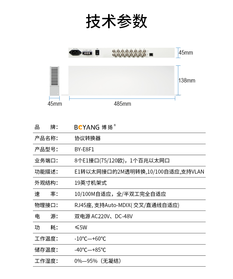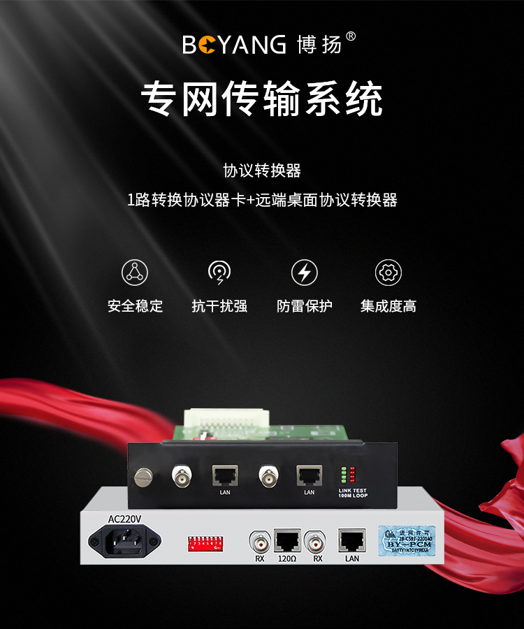 博扬 2U 1路转换协议器卡+远端桌面协议转换器 1对价BY-E1F1-2U 白色