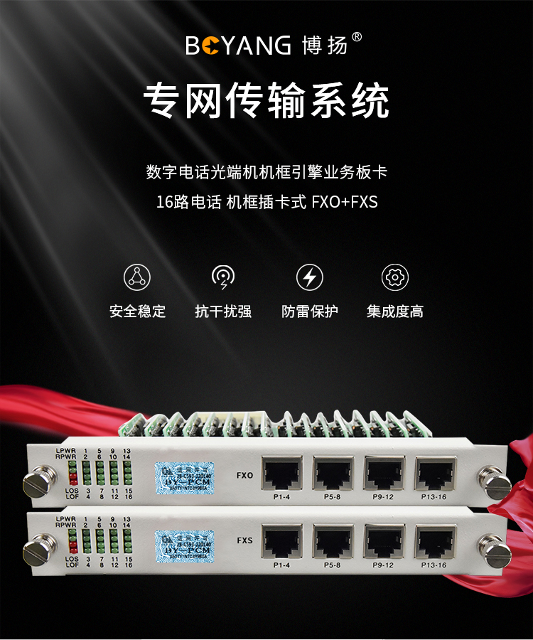 博扬(BOYANG) 数字电话光端机机框引擎业务板卡 16路电话 机框插卡式 FXO+FXS 1对价BY-ENG-16P 白色