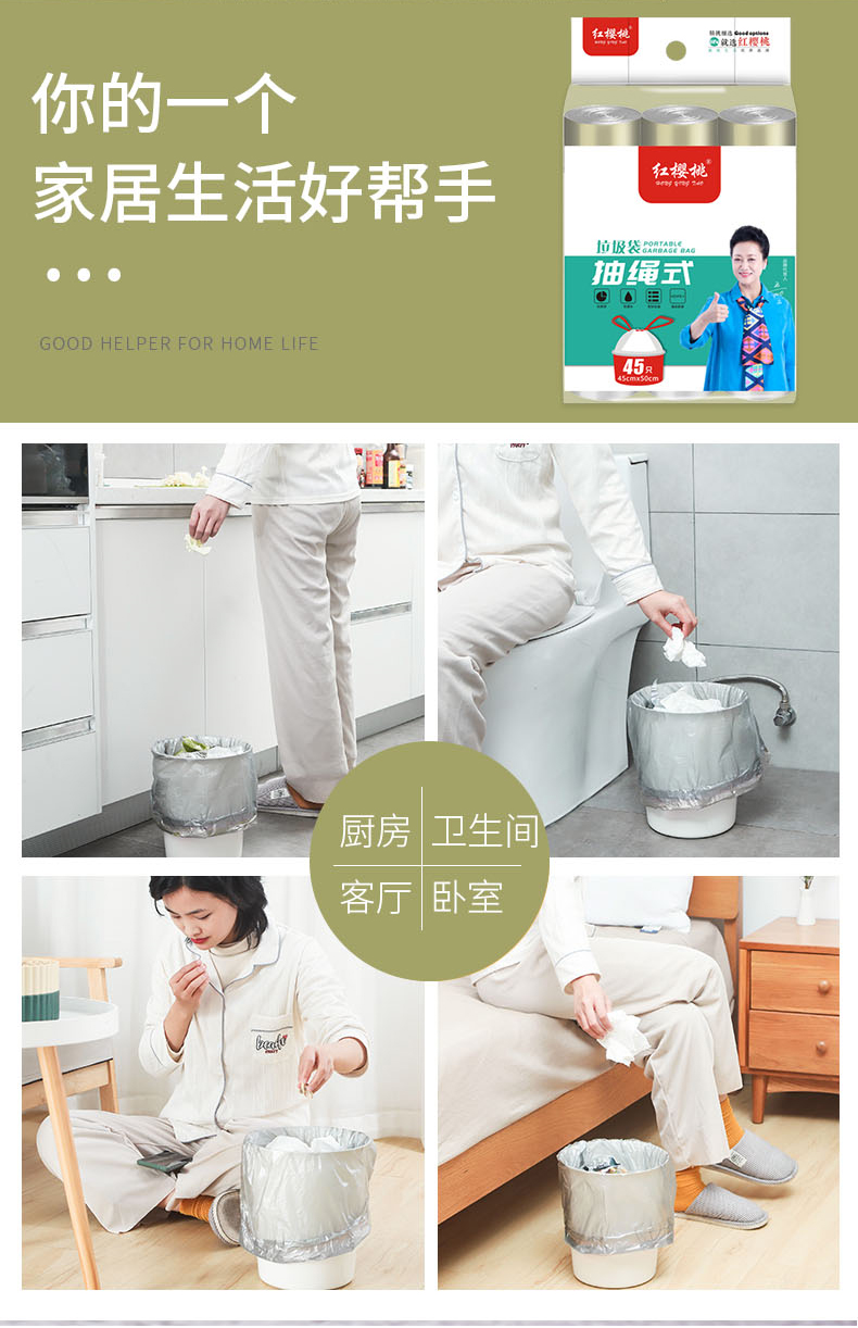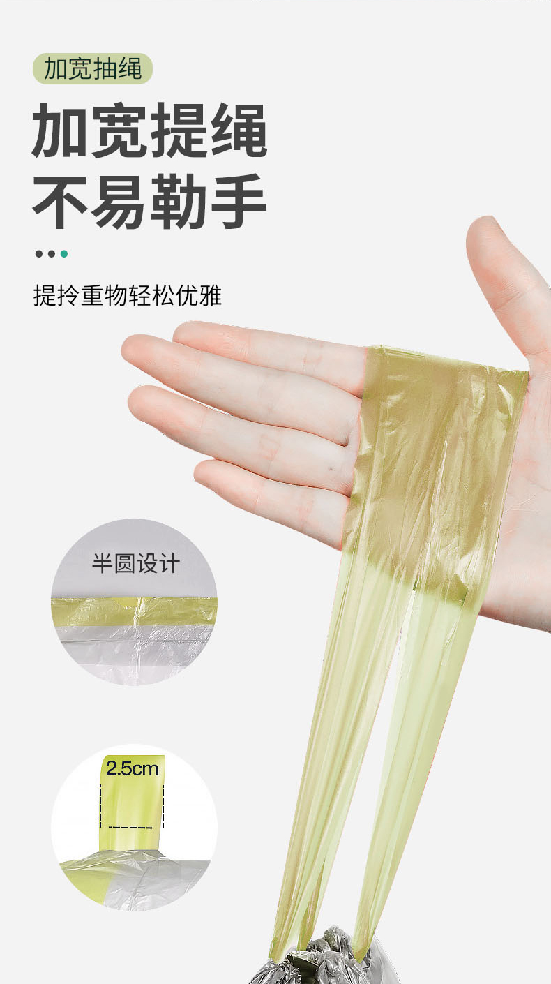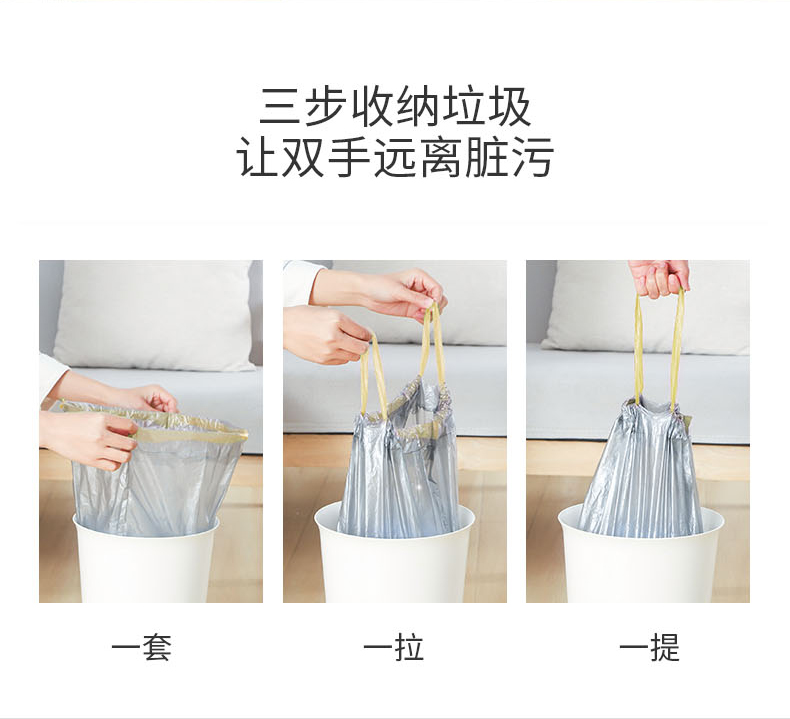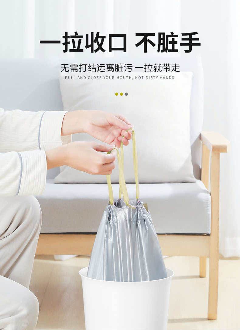 一次性抽绳垃圾袋塑料袋加厚家用手提式大号自动收口厨房垃圾 (袋45*50CM 一包3卷共45只装) 拿铁色