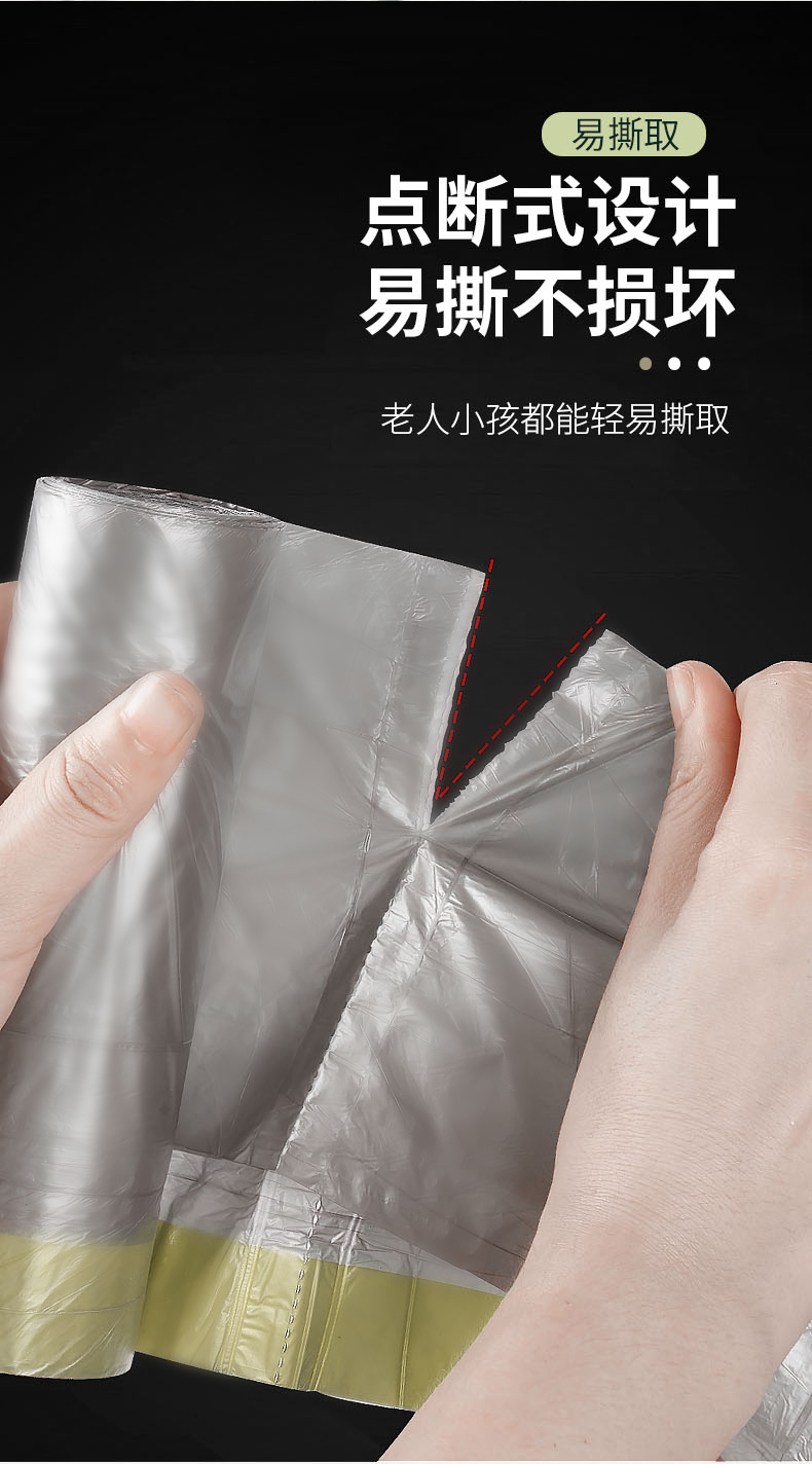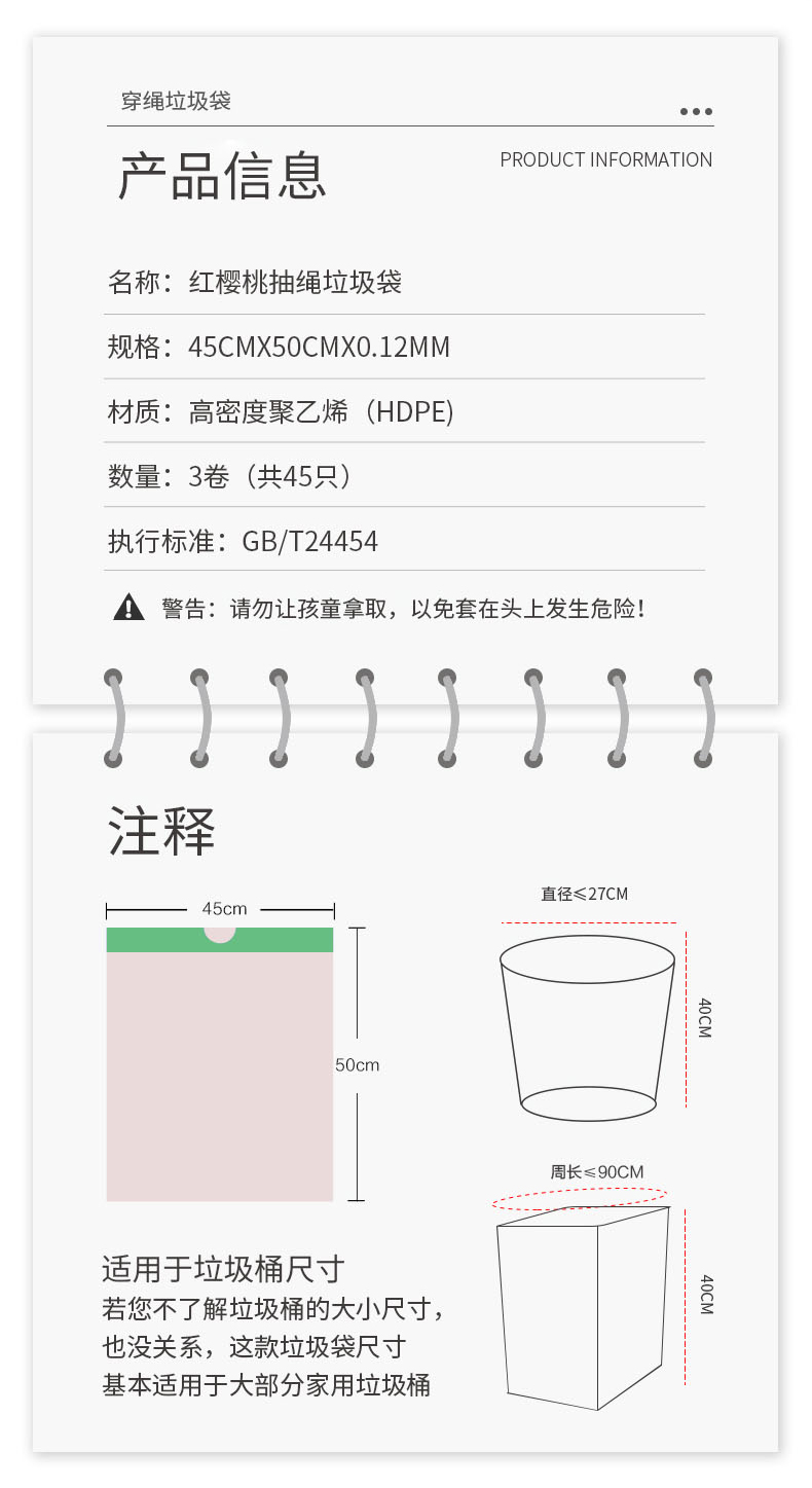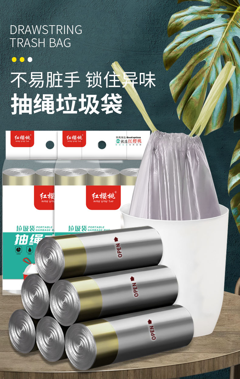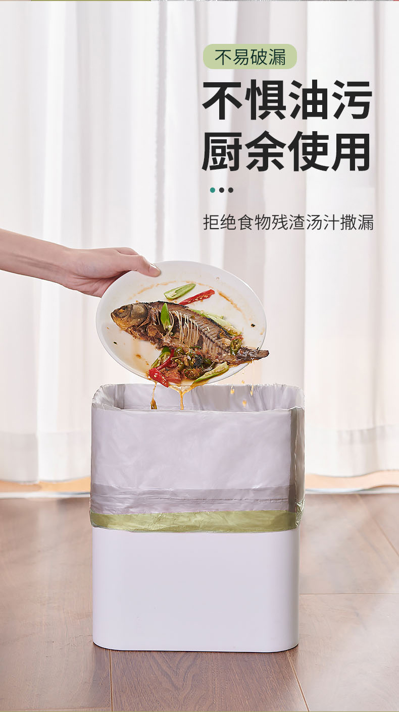 一次性抽绳垃圾袋塑料袋加厚家用手提式大号自动收口厨房垃圾 (袋45*50CM 一包3卷共45只装) 拿铁色