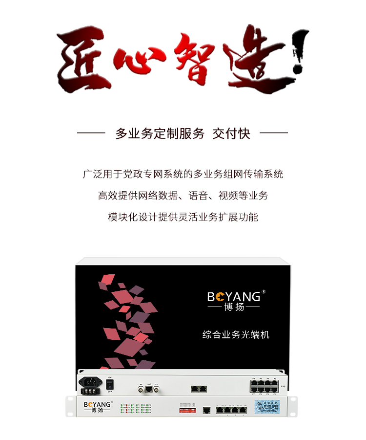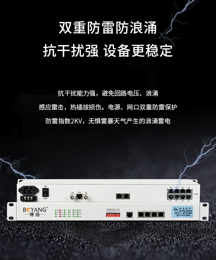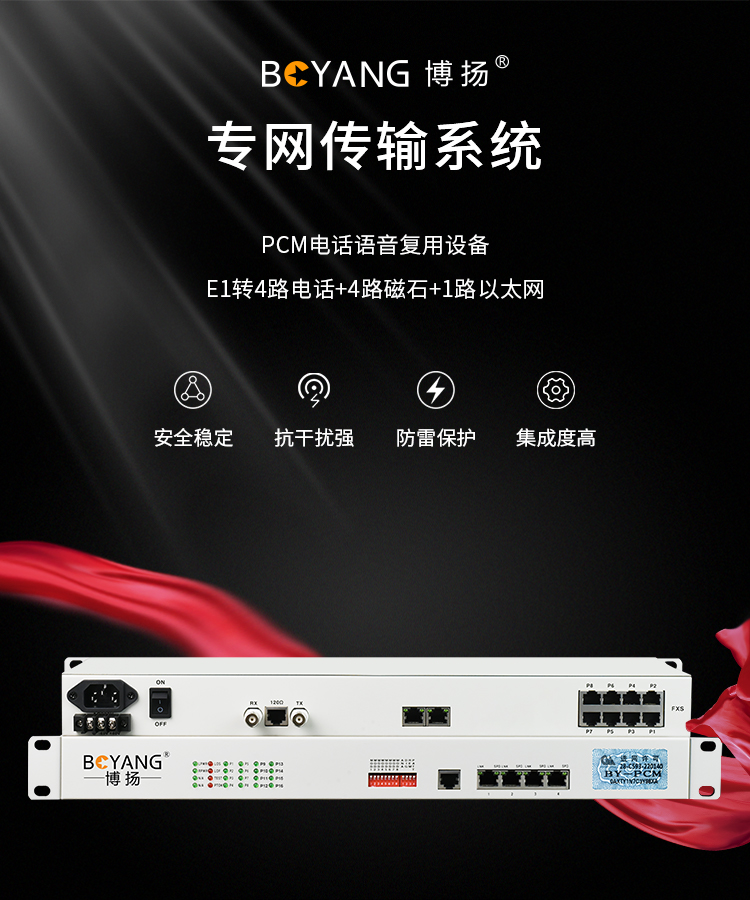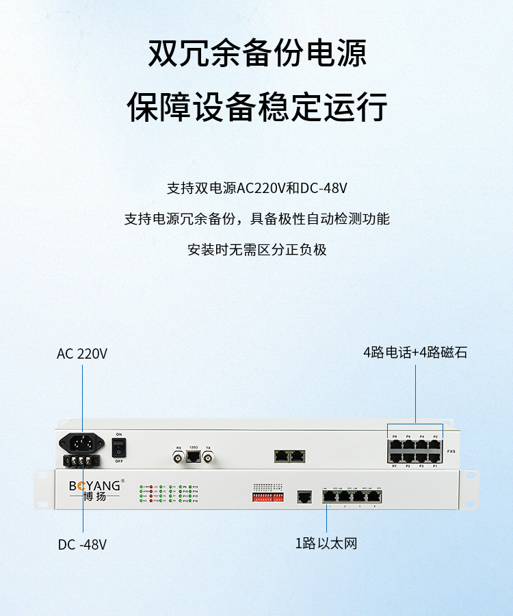 博扬(BOYANG)BY-E1-4P4H-IFE PCM电话语音复用设备光端机 E1转4路电话+4路磁石+1路以太网 机架式 双电源 白色