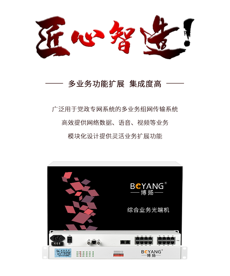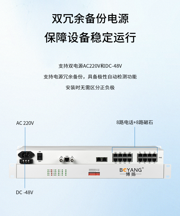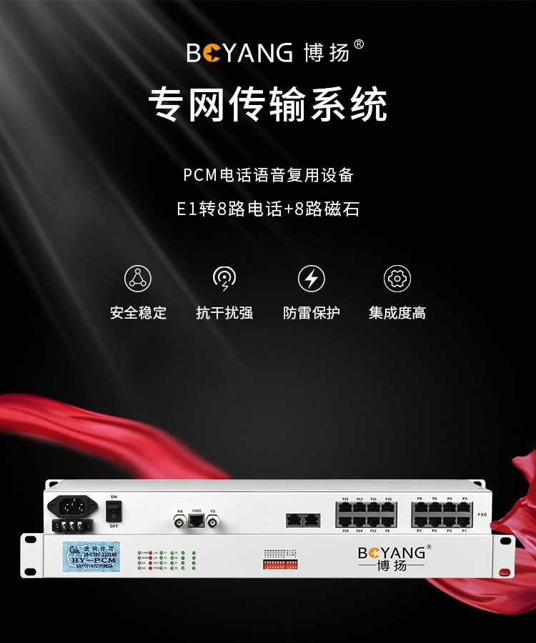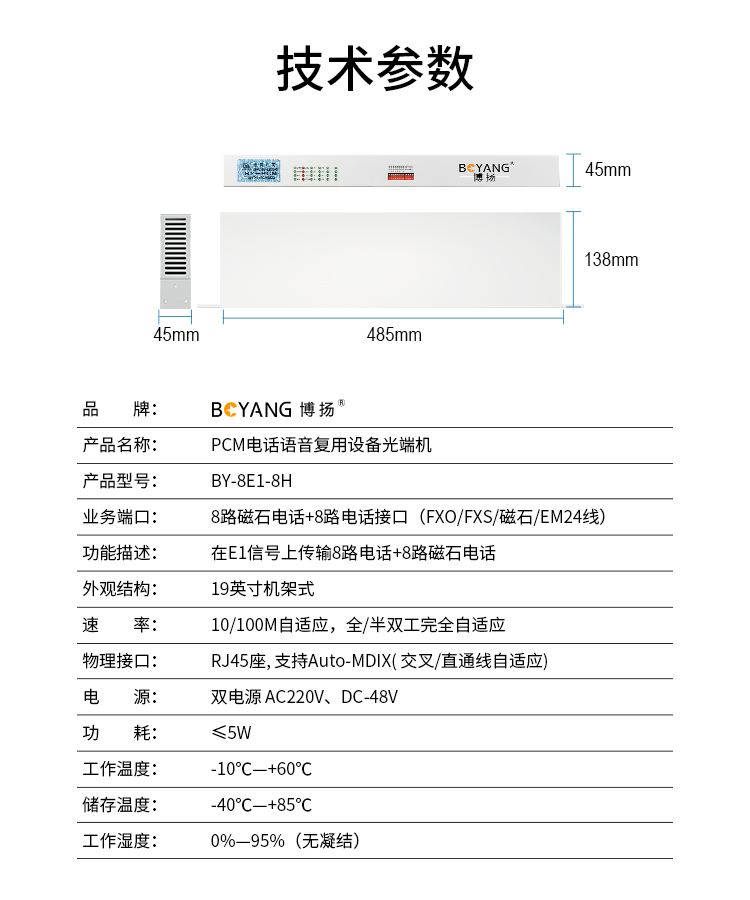 博扬(BOYANG)BY-8E1-8H PCM电话语音复用设备光端机 E1转8路电话+8路磁石 机架式 1对价 白色