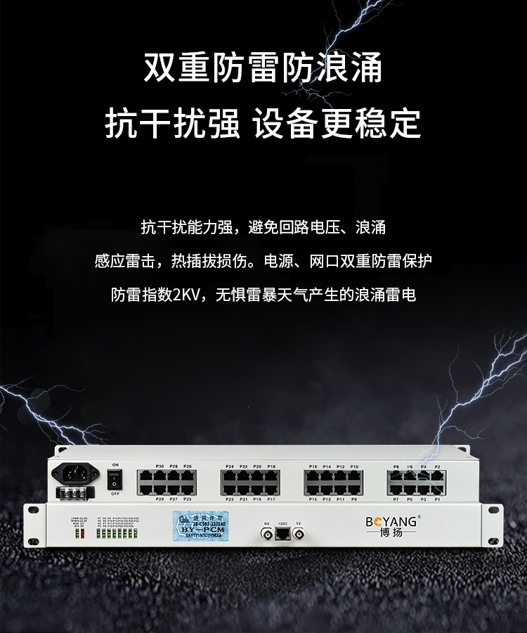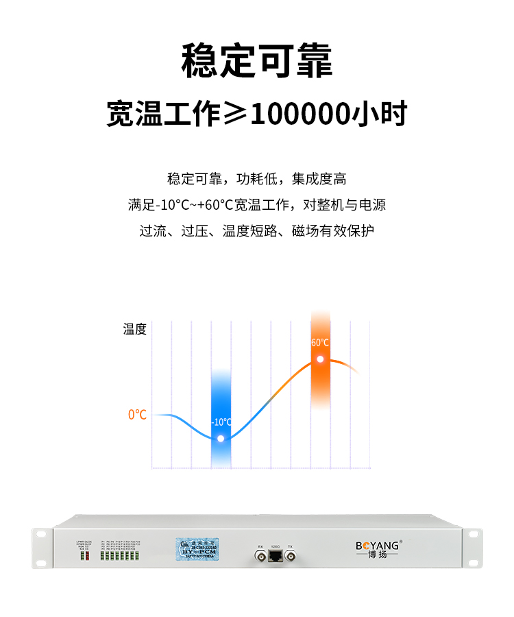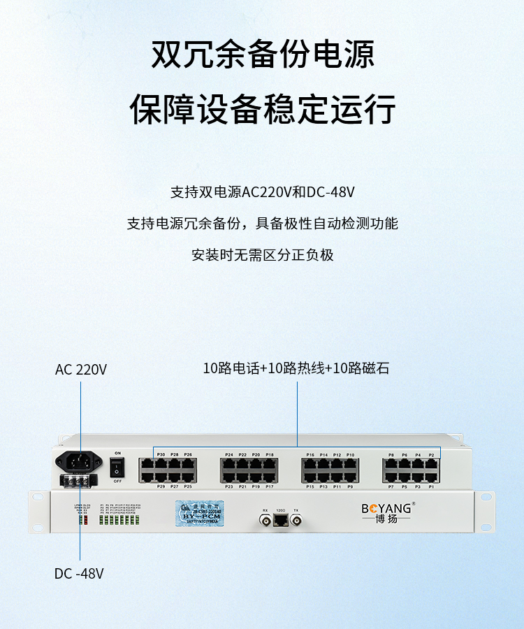 博扬(BOYANG)BY-10E1-10RH PCM电话语音复用设备光端机 E1转10路电话+10路热线+10路磁石 机架式双电源 白色