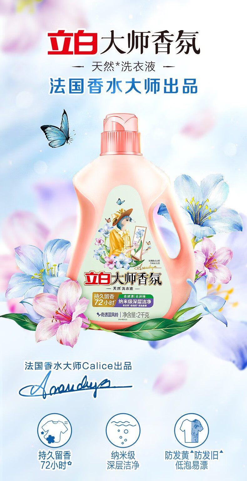 立白【8斤装】大师香氛蓝风铃洗衣液2kg瓶+柔顺剂2kg瓶 LB20230428YJDF016