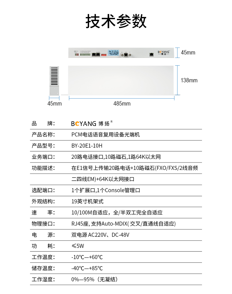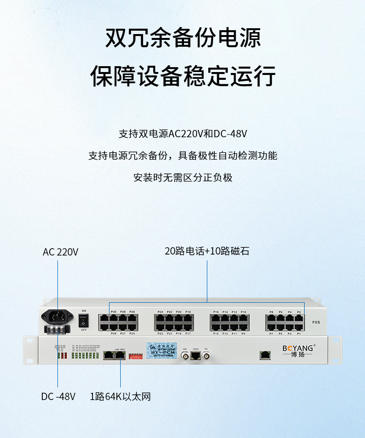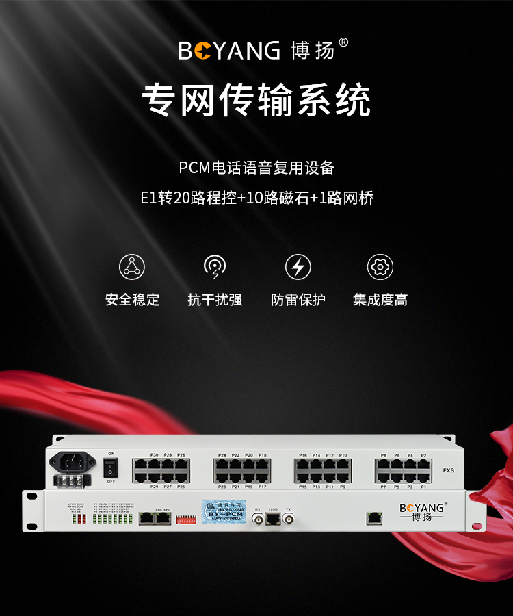 博扬(BOYANG)PCM语音复用设备E1转30路语音(20路程控 10路磁石)1路网桥 BY-20E1-10H 白色