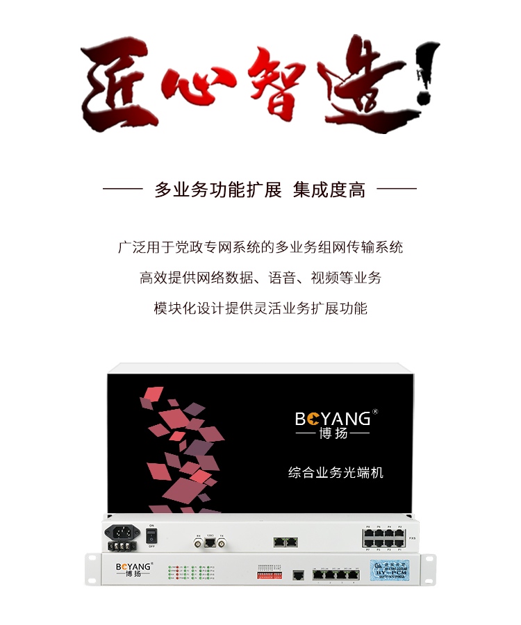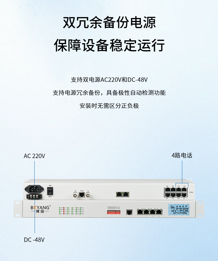 博扬(BOYANG)BY-4E1 PCM电话语音复用设备光端机 E1转4路电话FXO/FXS 机架式 1对价 白色