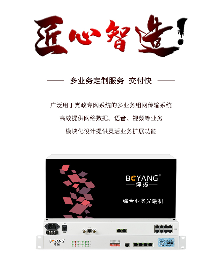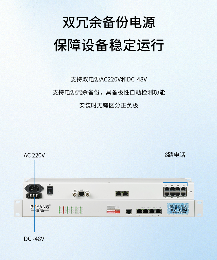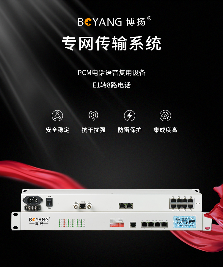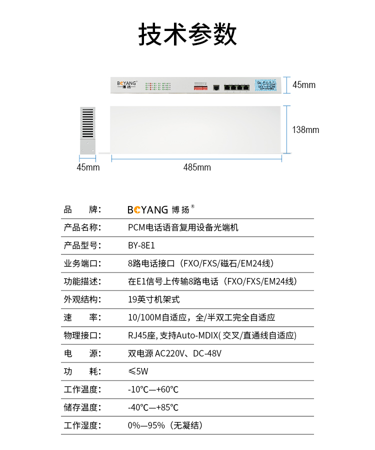 博扬(BOYANG)BY-8E1 PCM电话语音复用设备光端机 E1转8路电话FXO/FXS 机架式 1对价 白色