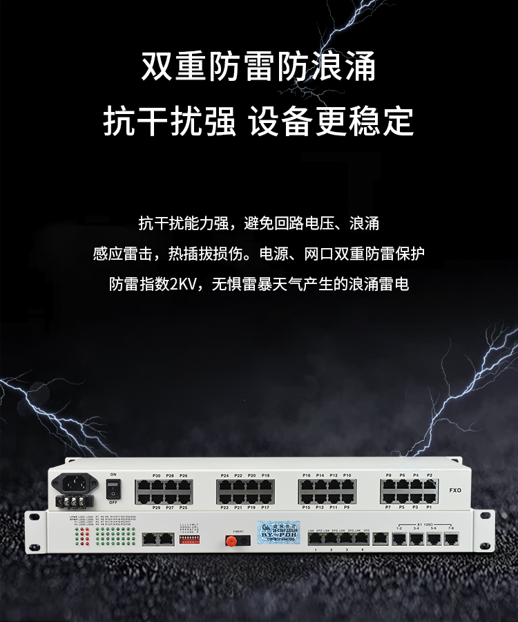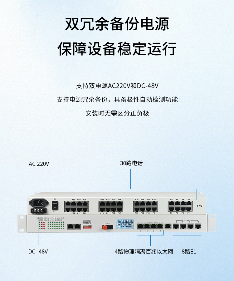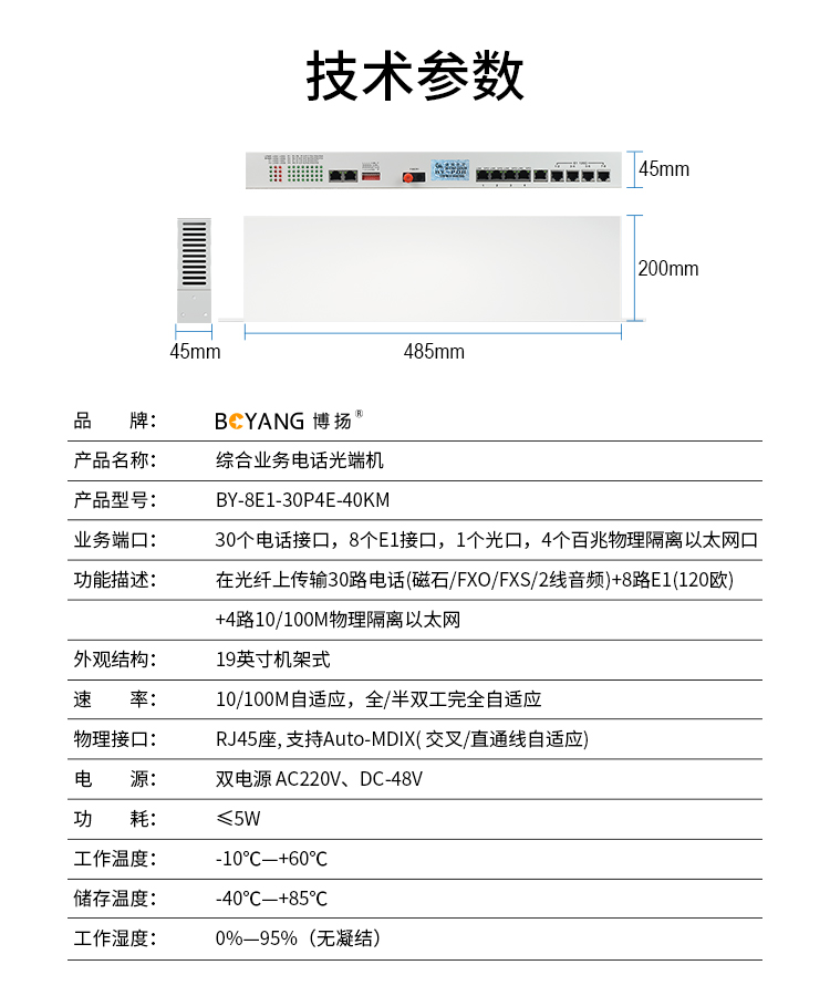 博扬 综合业务电话光端机 8路E1+30路电话+4路百兆以太网物理隔离 单纤40km 机架式 1对价BY-8E1-30P4E-40KM 白色