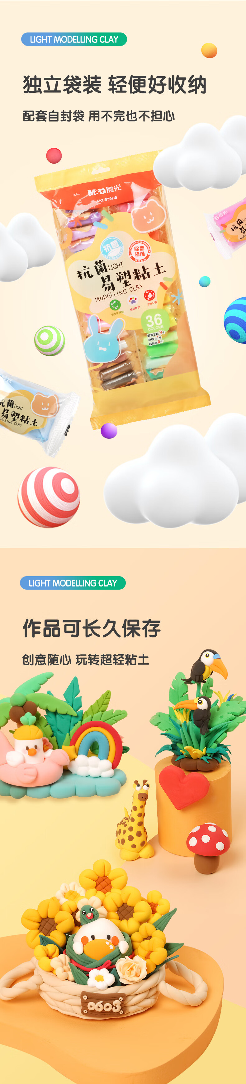 晨光(M&G)文具36色安心超轻粘土 彩泥黏土橡皮泥4D 儿童手工DIY玩具 AKE039H9 袋装 36色