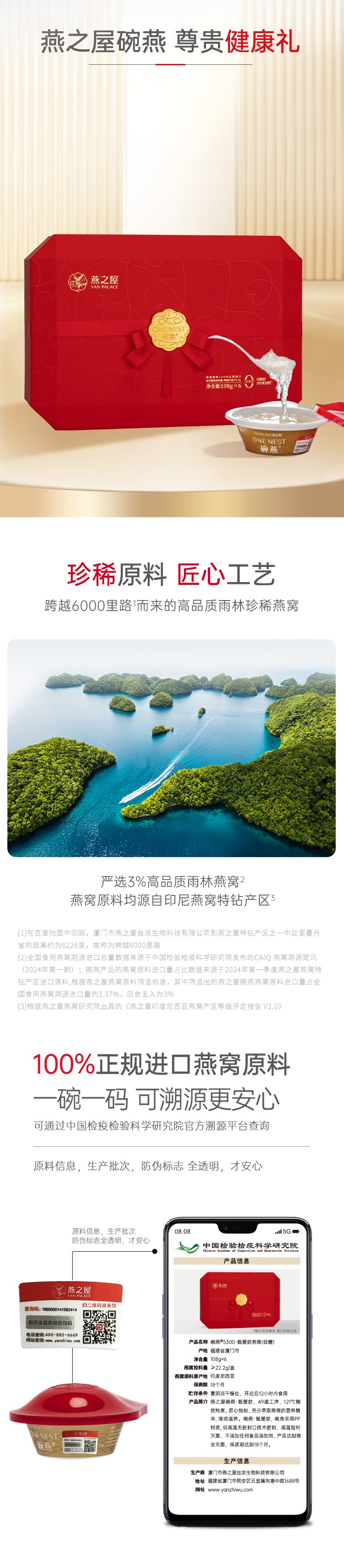 燕之屋 甄爱款 108g*6碗 礼盒装 红色(单位:盒)