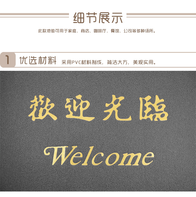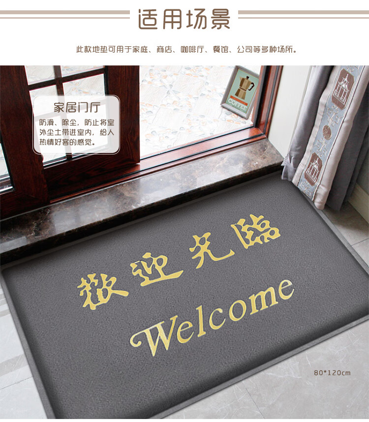 墨斗鱼 欢迎光临地垫0017门垫进门脚踏垫丝圈地垫商场脚垫(单位:张) 欢迎光临灰色120*180cm
