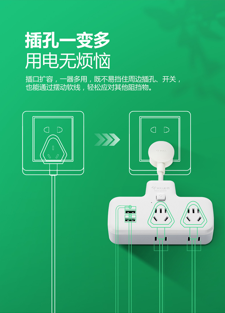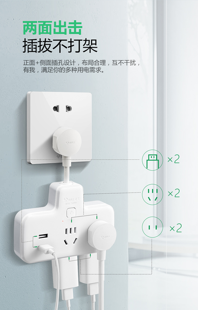 公牛(BULL) GN-9722Q 4孔 一转多插座 白色(单位:个)