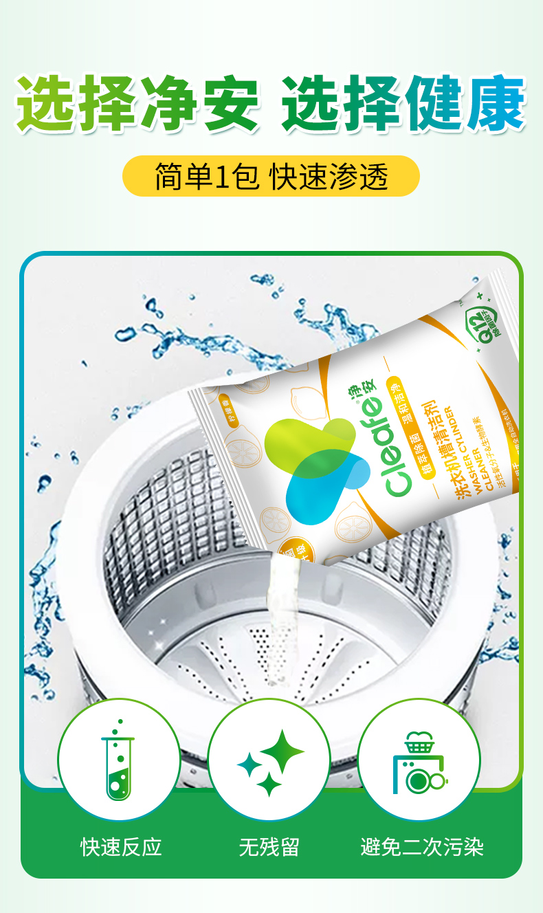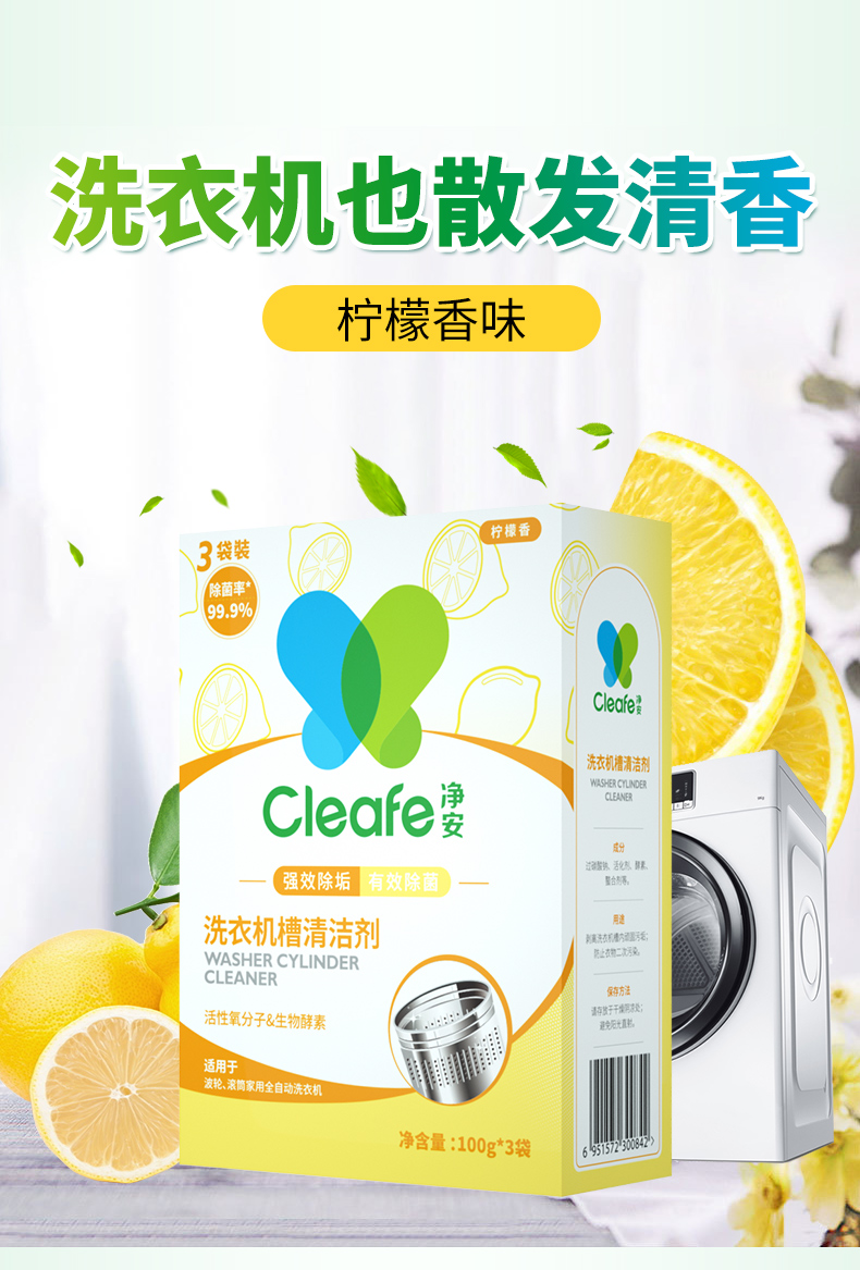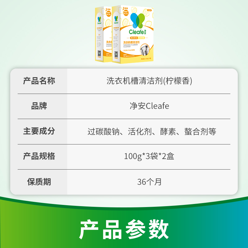 净安(Cleafe)洗衣机槽清洁剂(柠檬香)300g*2(单位:组) 黄色