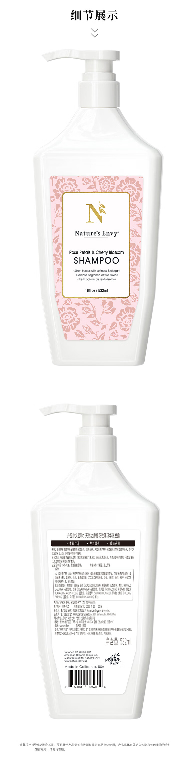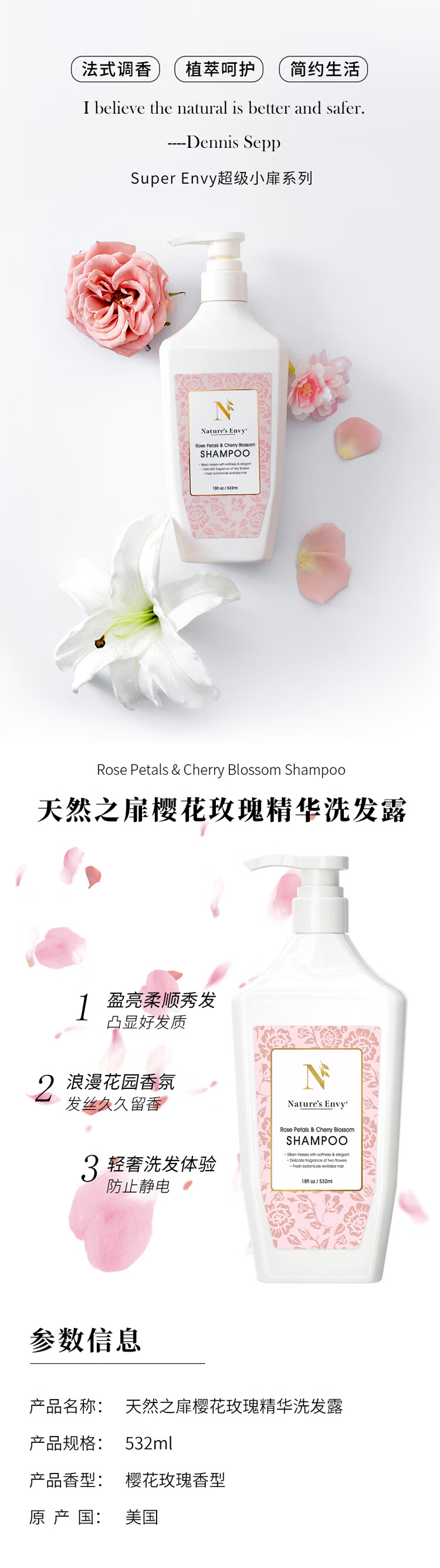 天然之扉樱花玫瑰精华洗发水532ml 白色