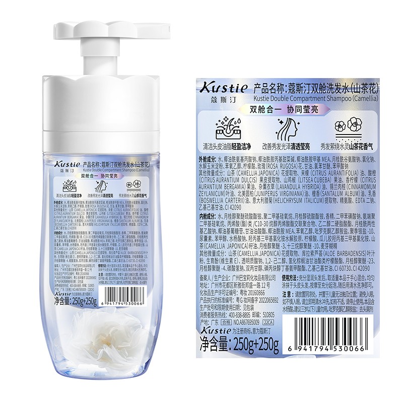 蔻斯汀双舱洗发水(山茶花) 500ml 单位(瓶) 深蓝色
