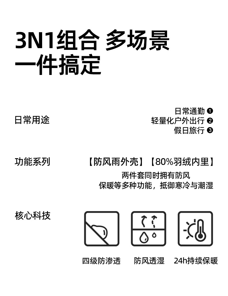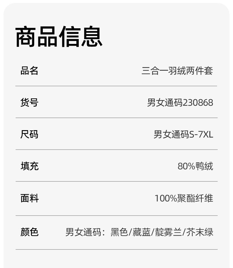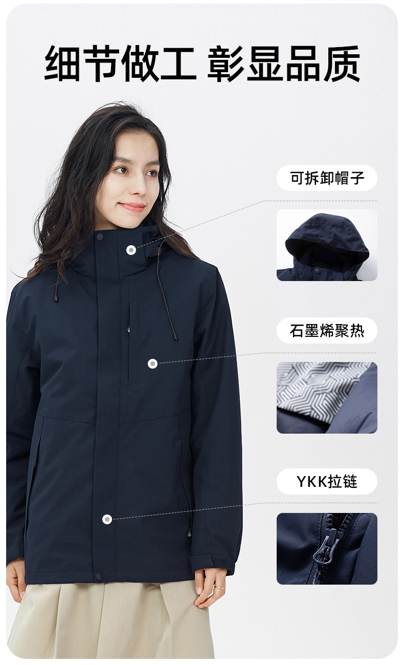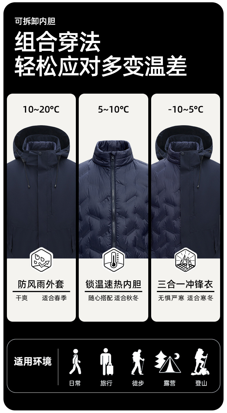 丰讯男女同款三合一秋冬季可拆卸羽绒内胆FXTF230868(单位:件) 男女同款黑色 M