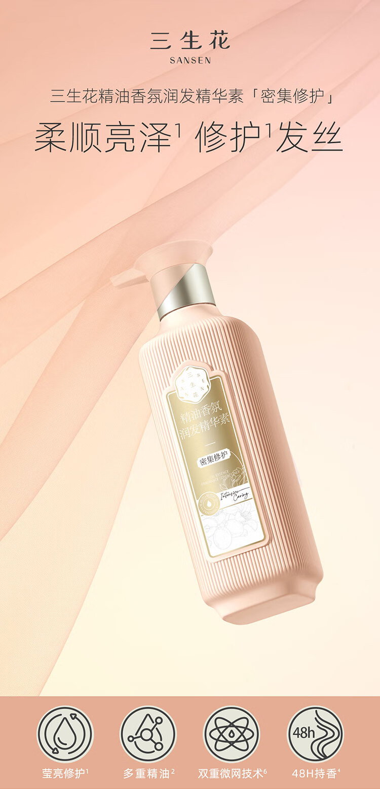 三生花 精油香氛润发精华素(密集修护)500ml(单位:瓶) 本白色