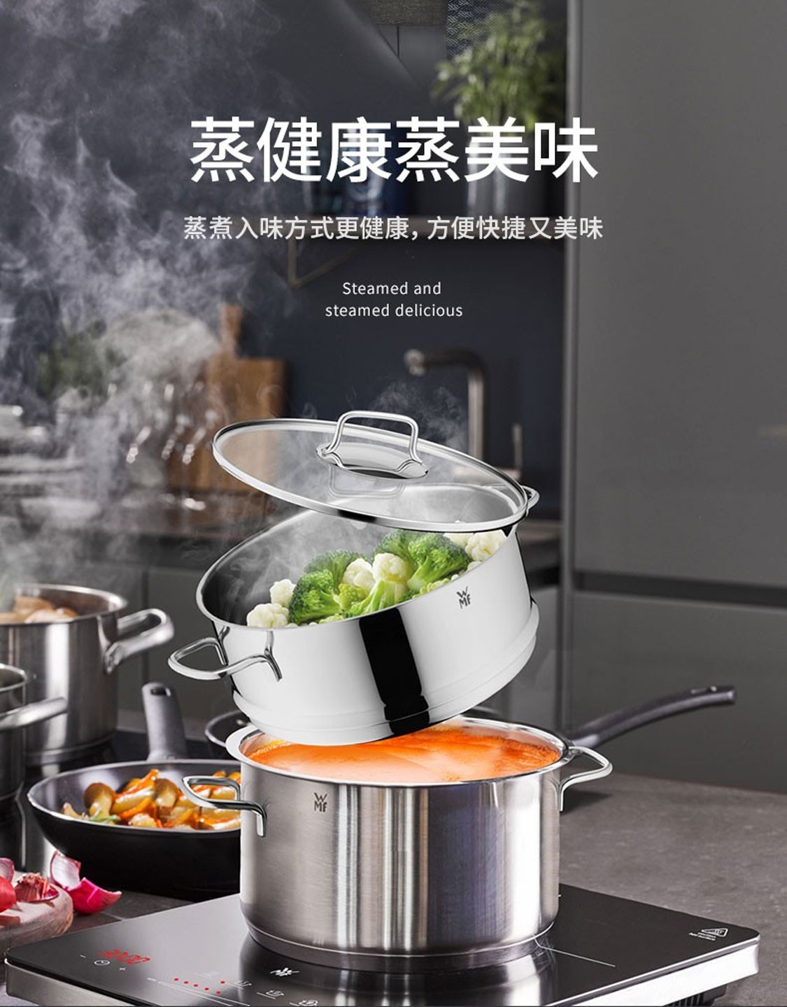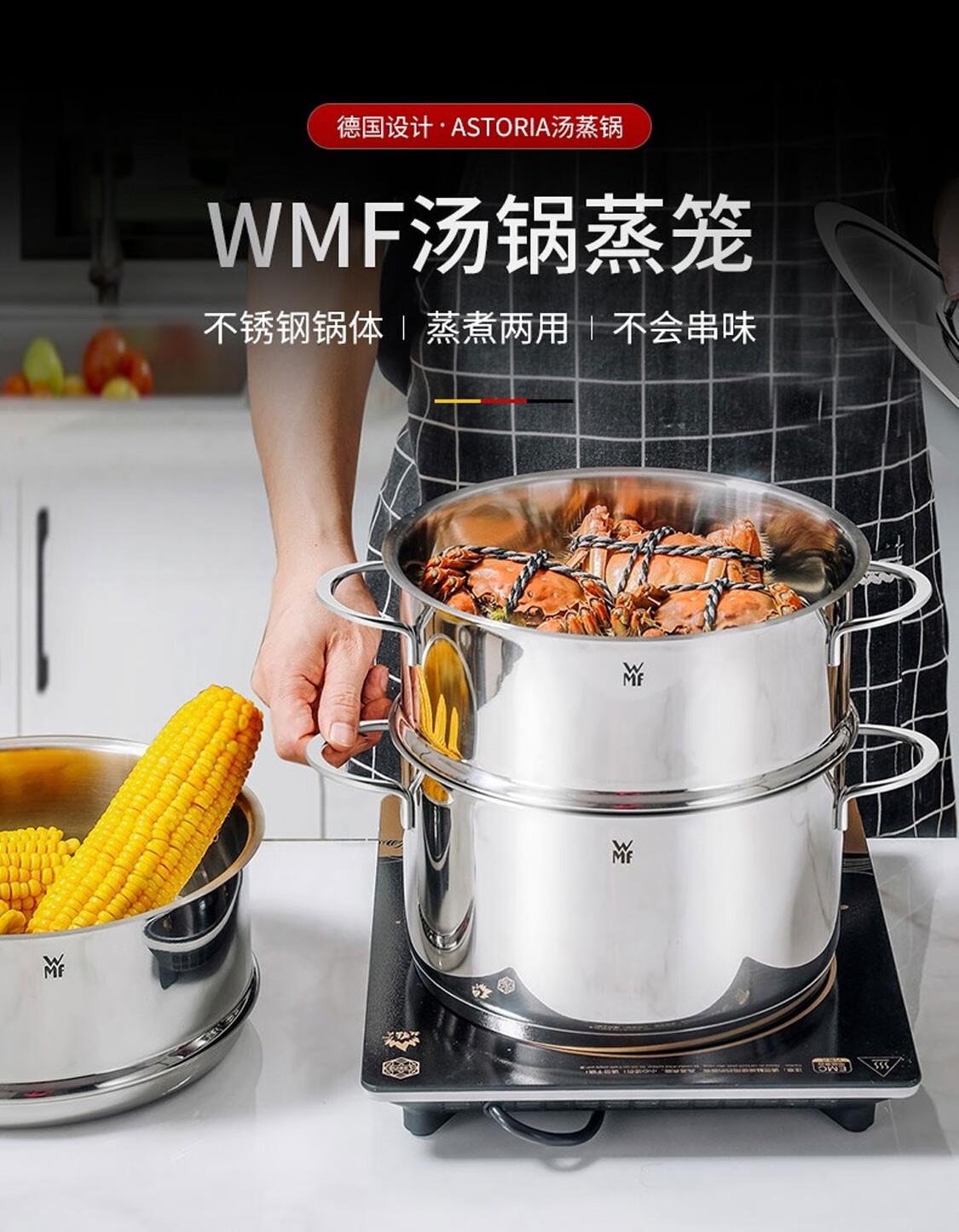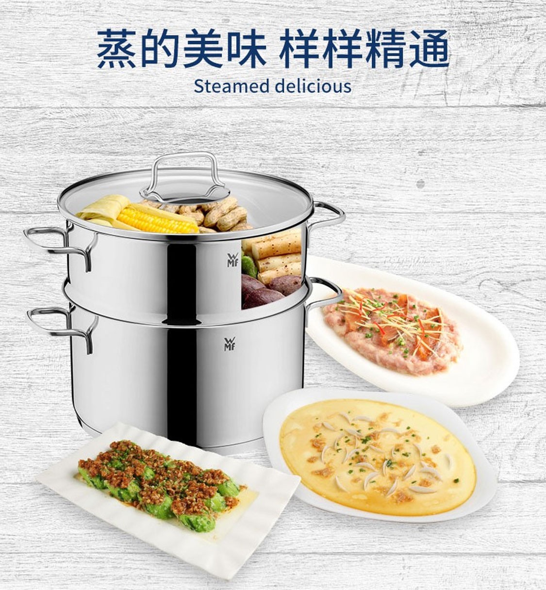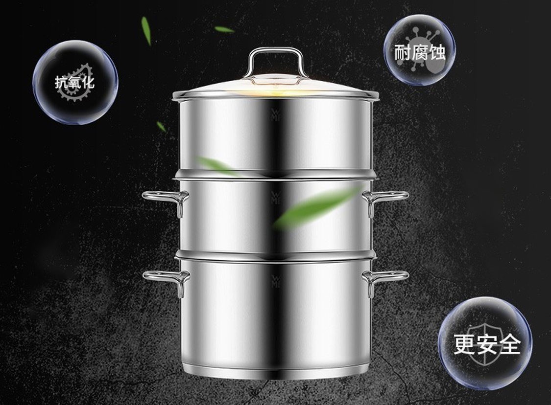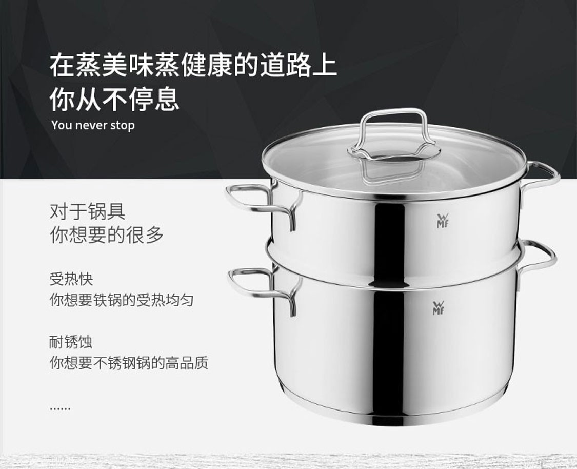 德国福腾宝蒸煮一体两用Astoria双层汤蒸锅24cm 不锈钢色