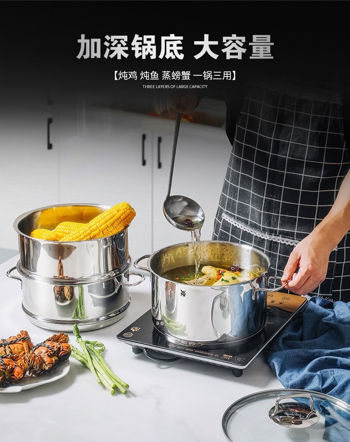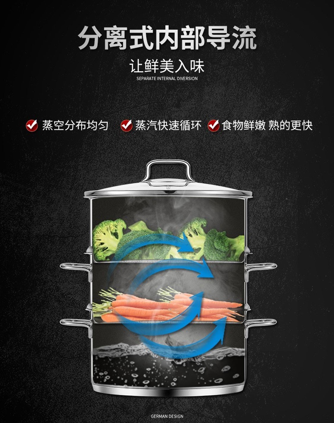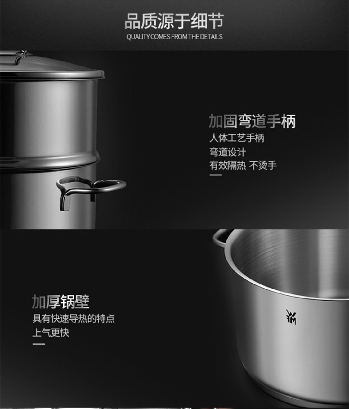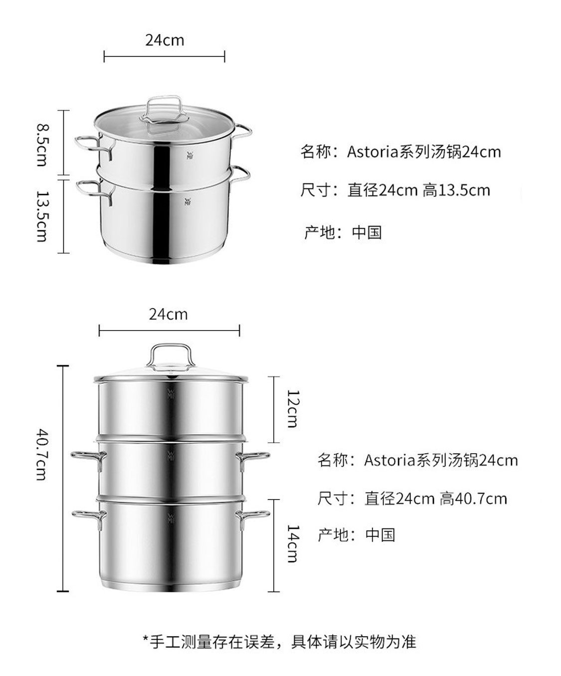 德国福腾宝蒸煮一体两用Astoria双层汤蒸锅24cm 不锈钢色