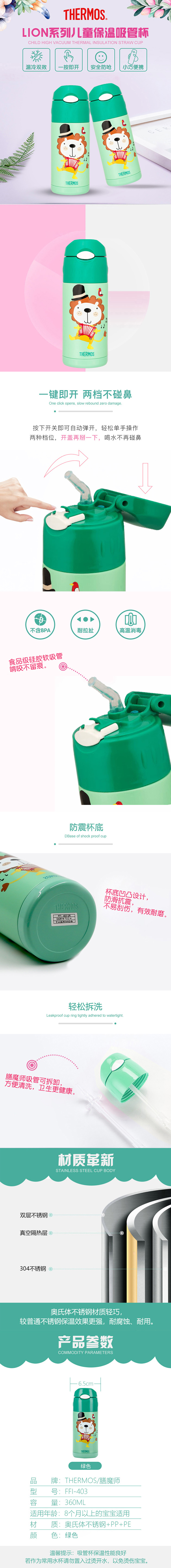 膳魔师高真空不锈钢吸管杯FFI-403GR 绿色