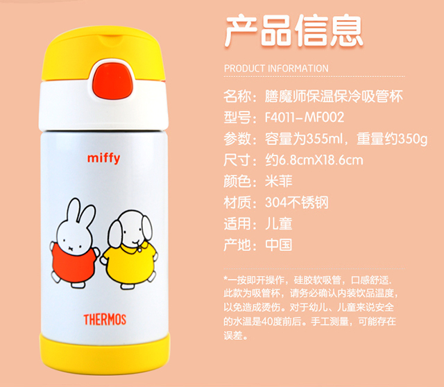 膳魔师不锈钢儿童保温吸管杯F4011MF002 黄色