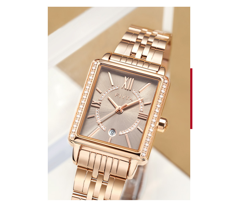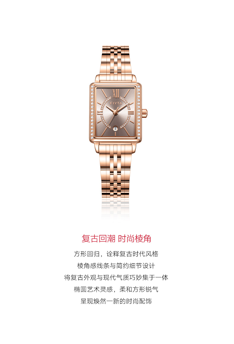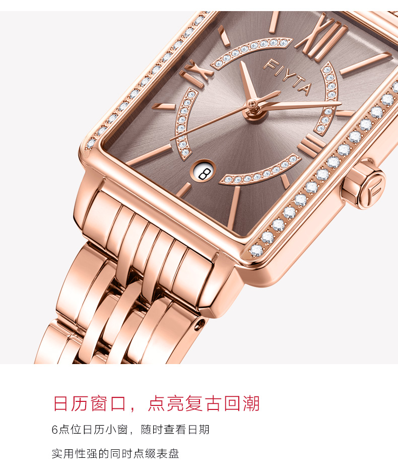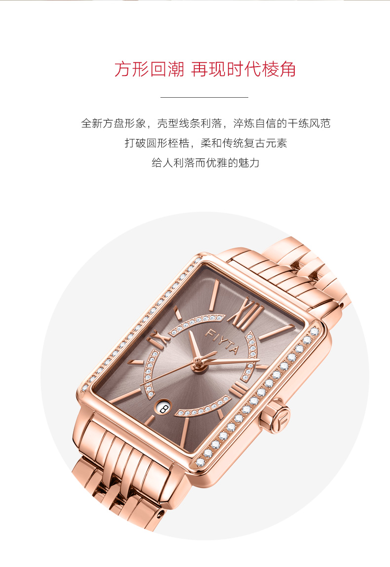 飞亚达(FIYTA) 小方表倾城系列手表女防水时尚石英休闲简约腕表 L865010.PHPD 咖啡色