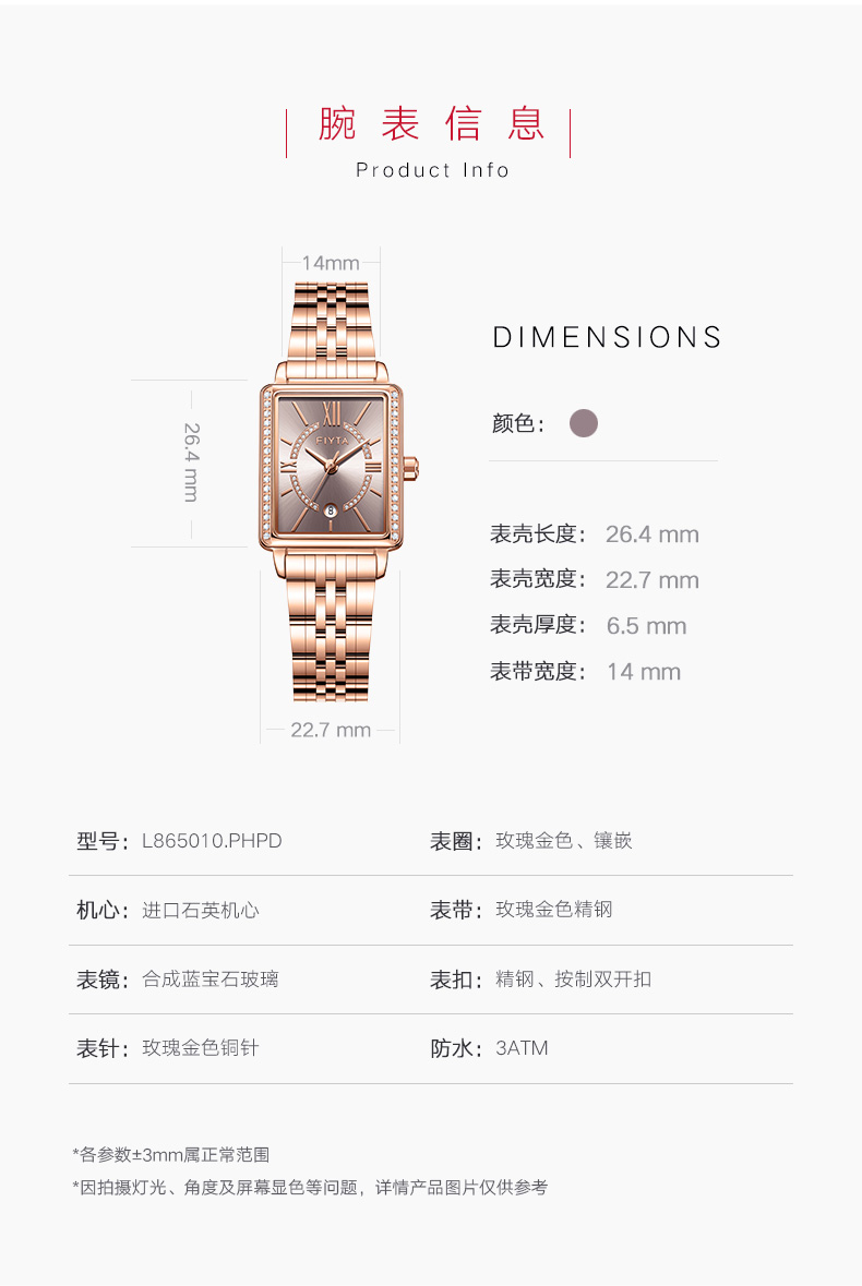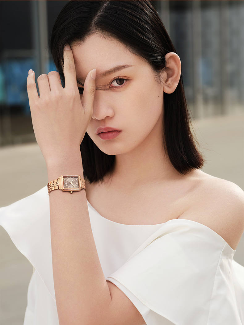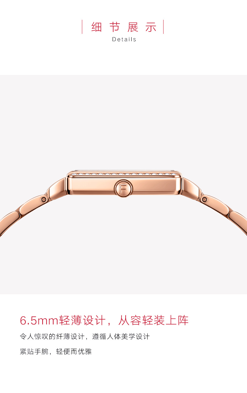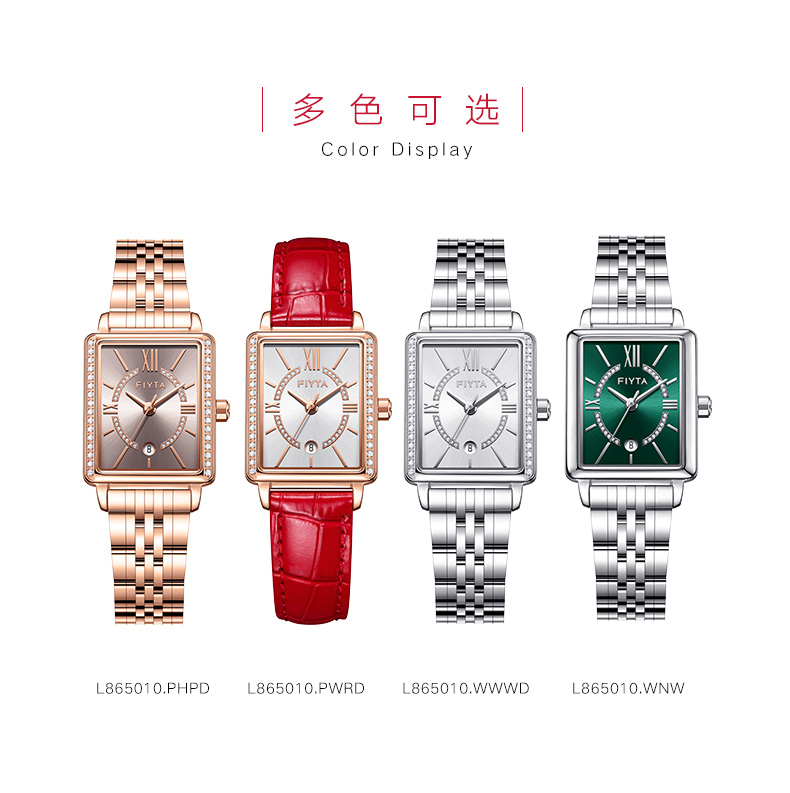 飞亚达(FIYTA) 小方表倾城系列手表女防水时尚石英休闲简约腕表 L865010.PHPD 咖啡色