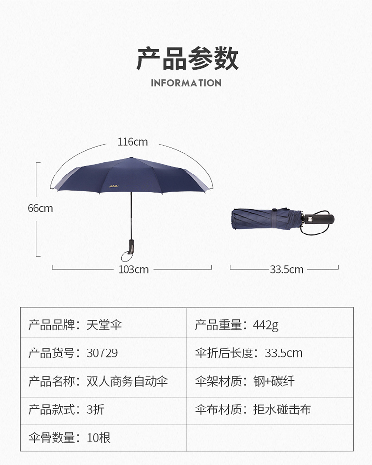 天堂伞【30729ELST】10骨全自动雨伞-/把 紫兰