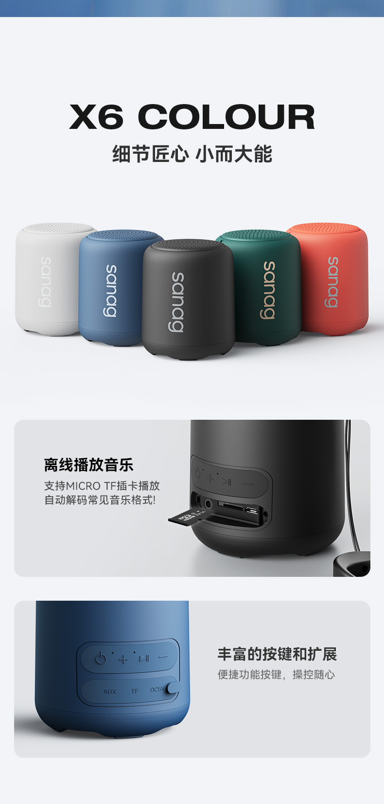 sanag塞那X6S11蓝牙音箱无线小型音响迷你高音质低音炮便携车载户外单位:个 黑色