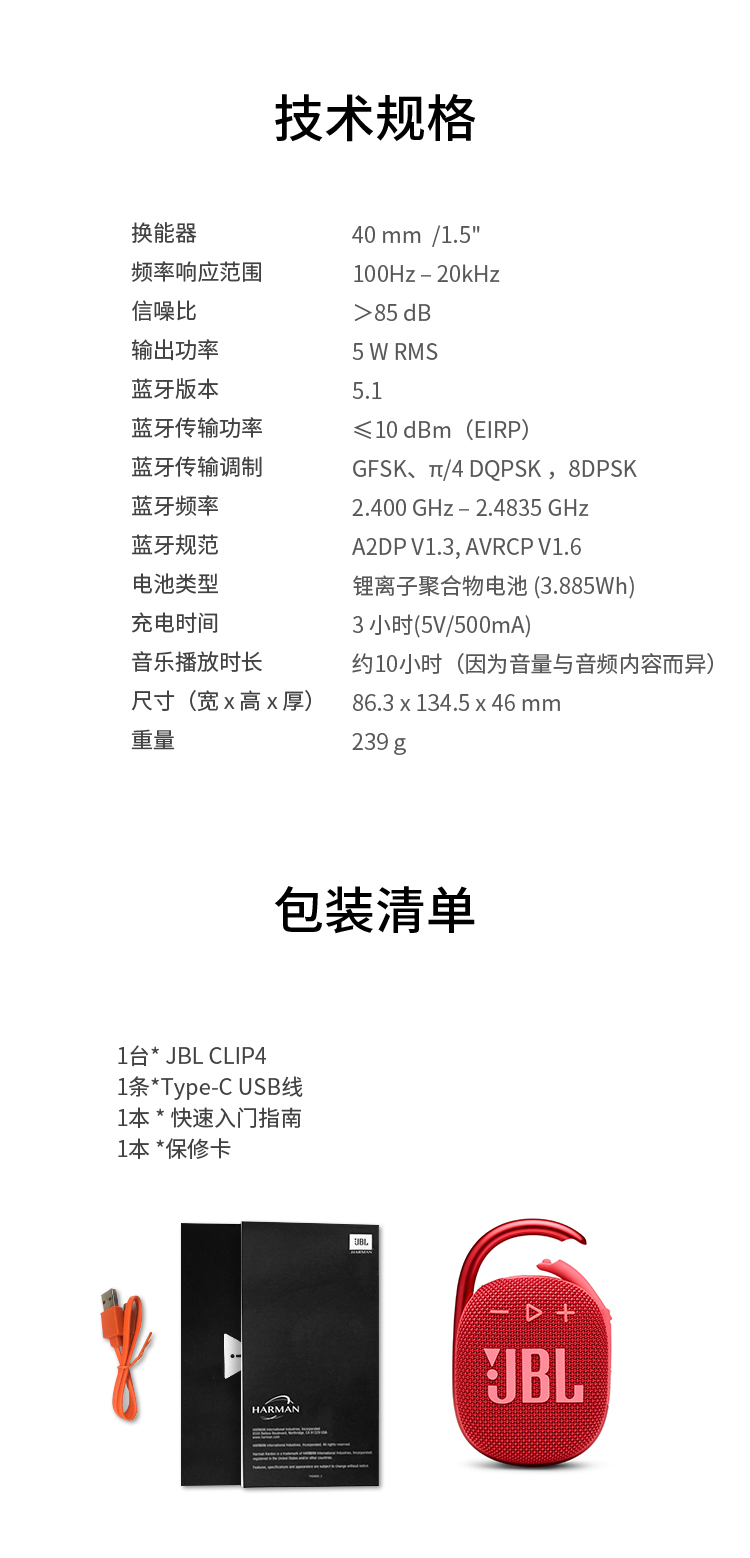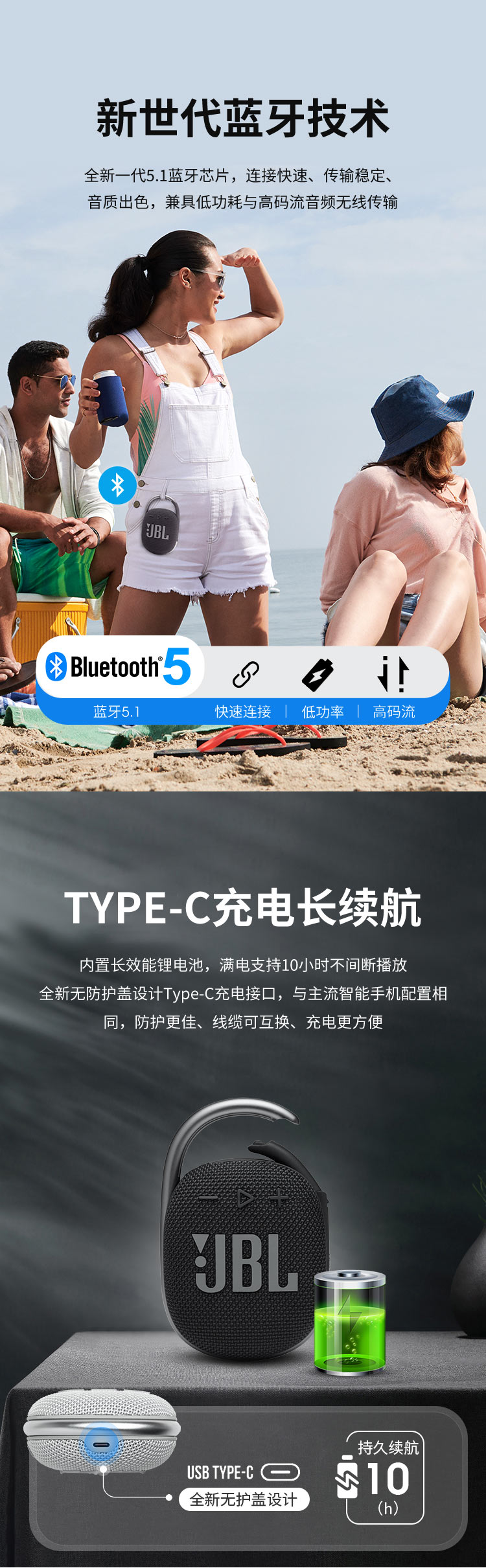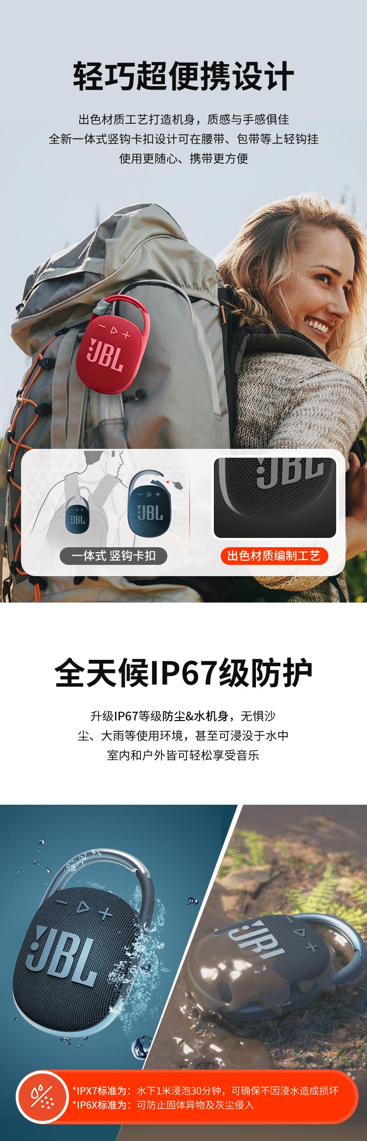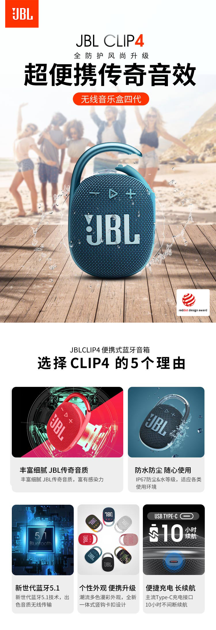 JBL CLIP4 无线音乐盒四代 蓝牙便携音箱 蓝色