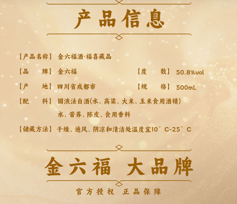 金六福 中国福酒 福喜藏品50.8度 白酒 500ml*6瓶/箱 红色(单位:箱)