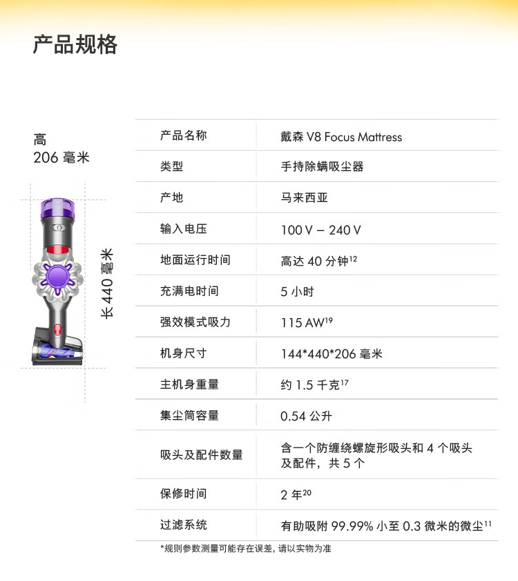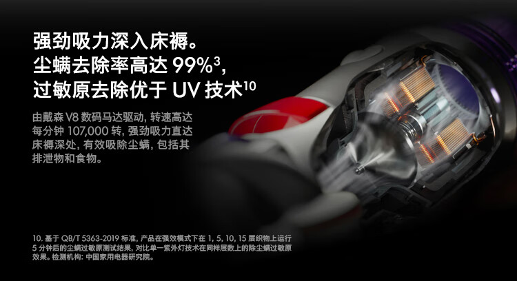 戴森(DYSON)V8 Focus Mattress手持式除螨吸尘器 除螨 宠物 家庭适用台 银色
