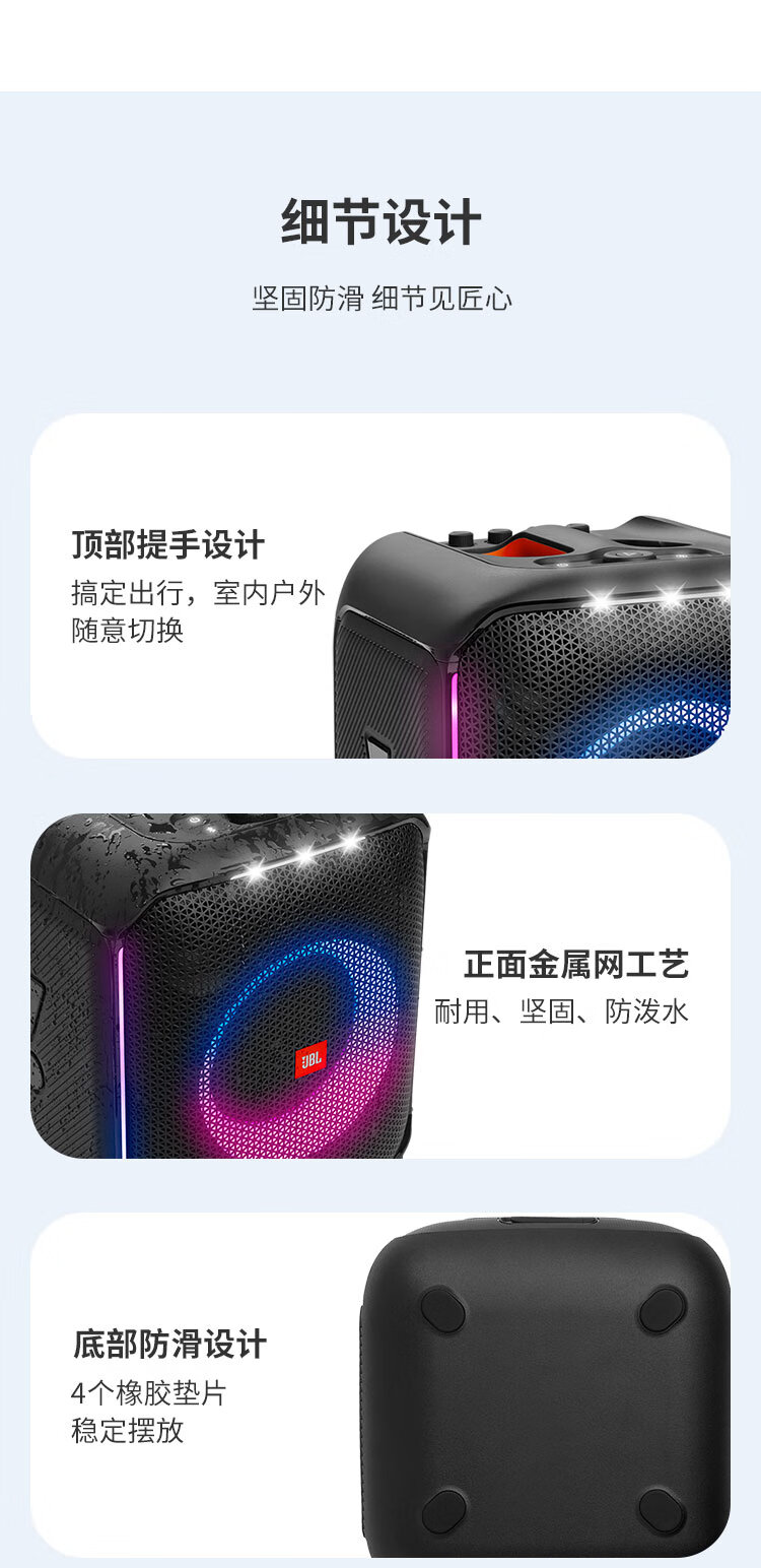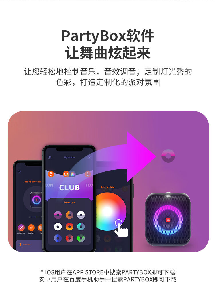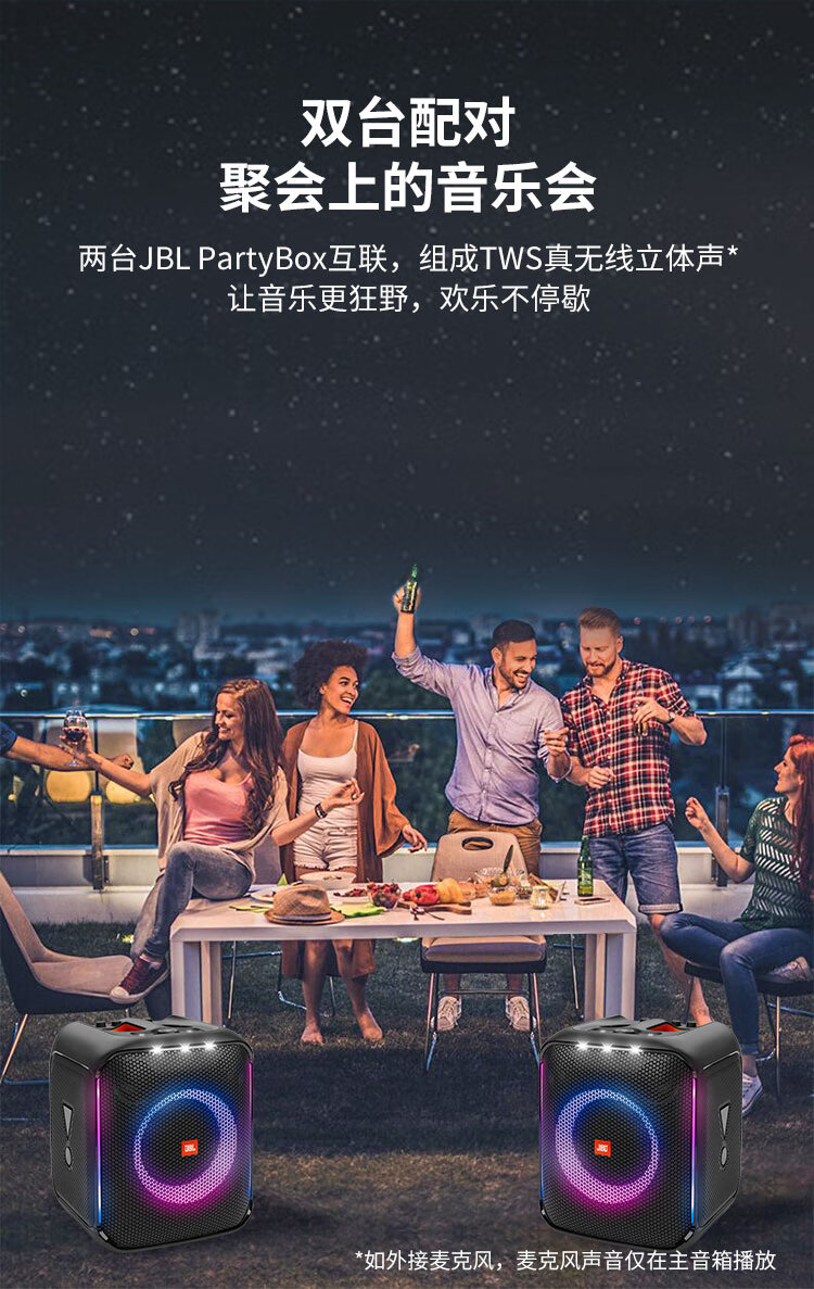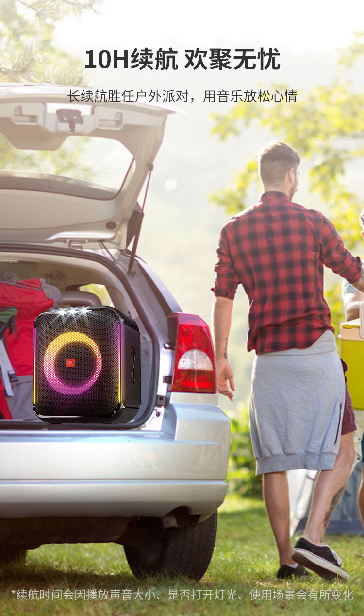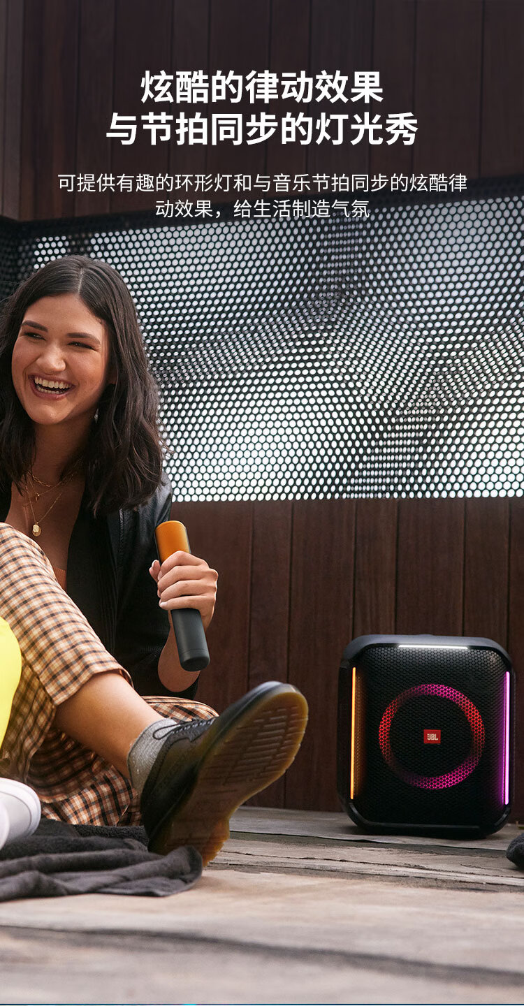 JBL Partybox Encore Essential 音乐战将(欢唱版)炫彩灯光户外蓝牙音响 黑色