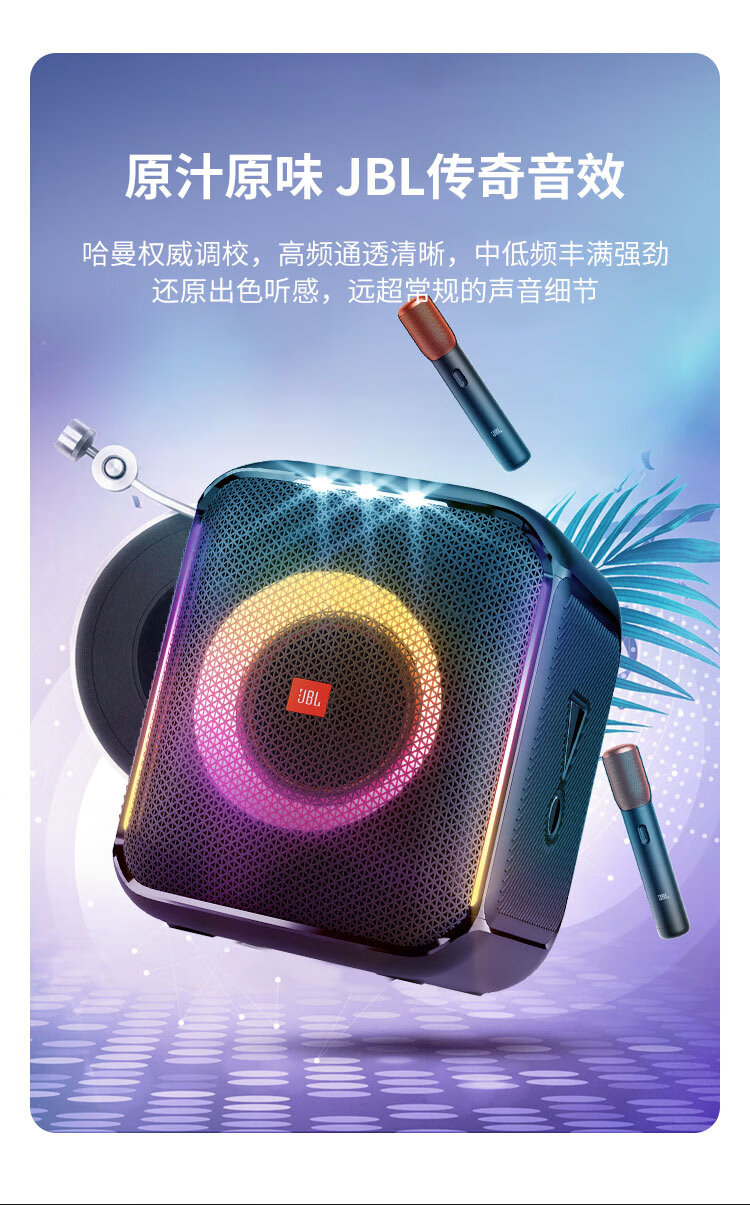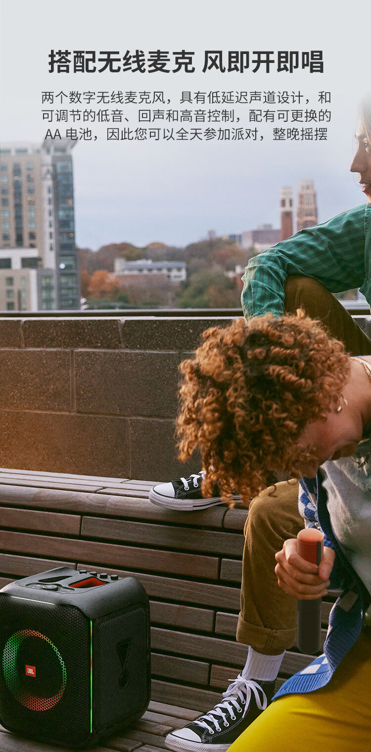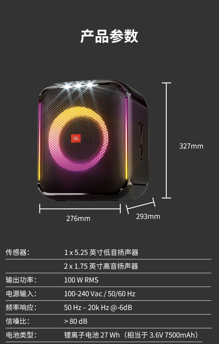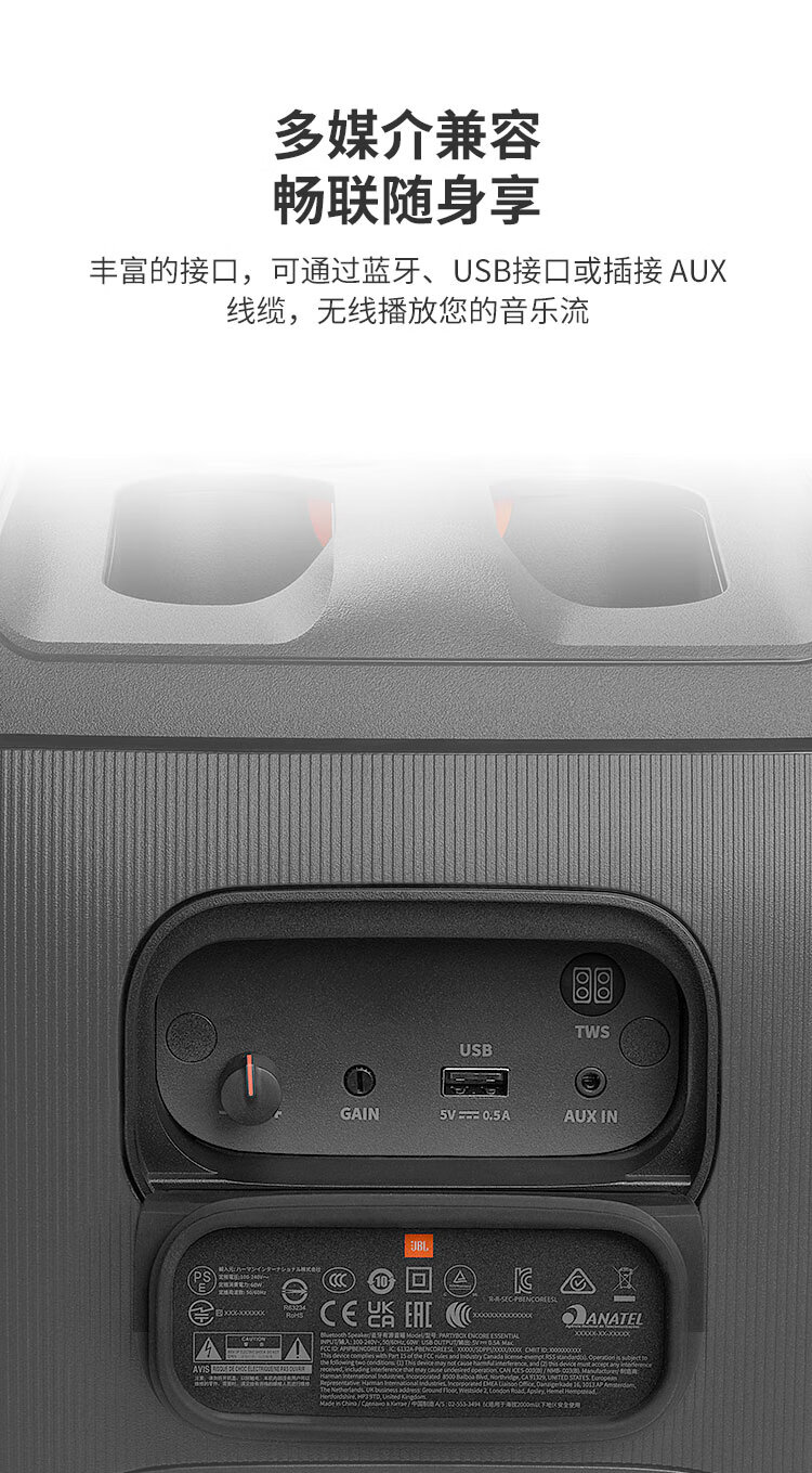 JBL Partybox Encore Essential 音乐战将(欢唱版)炫彩灯光户外蓝牙音响 黑色