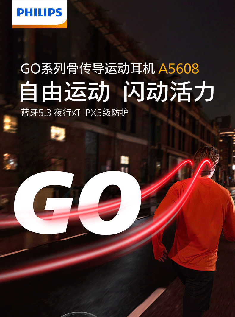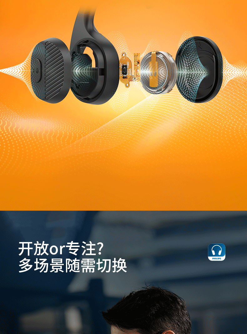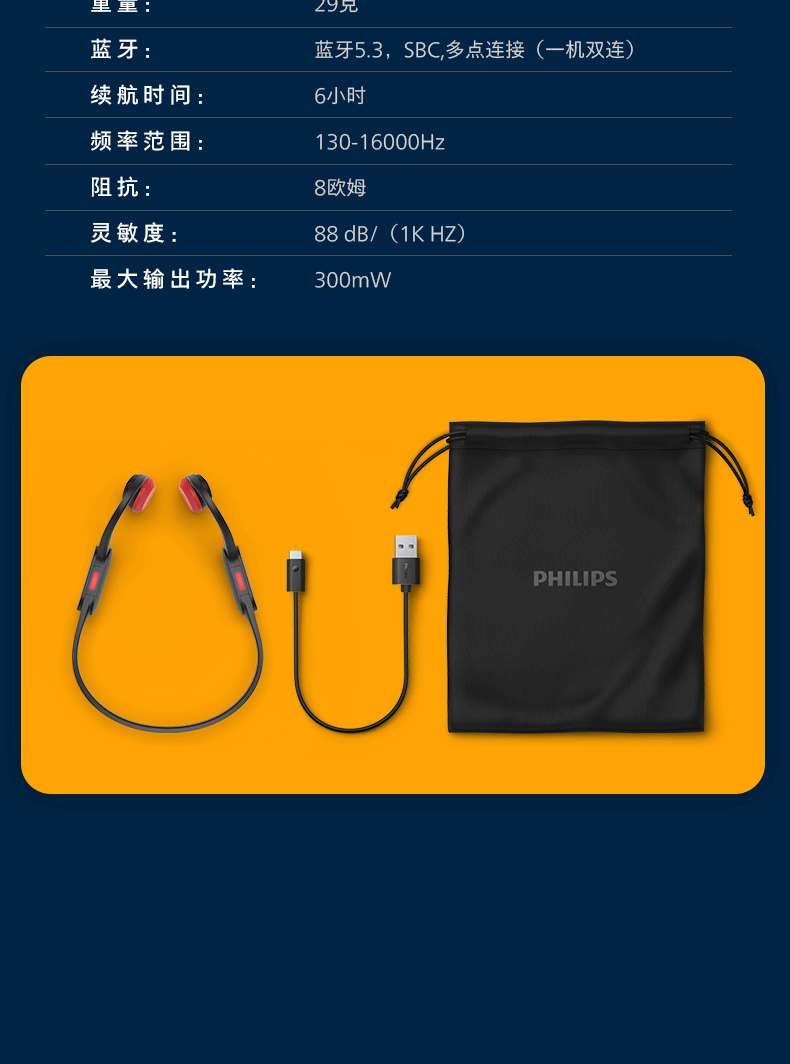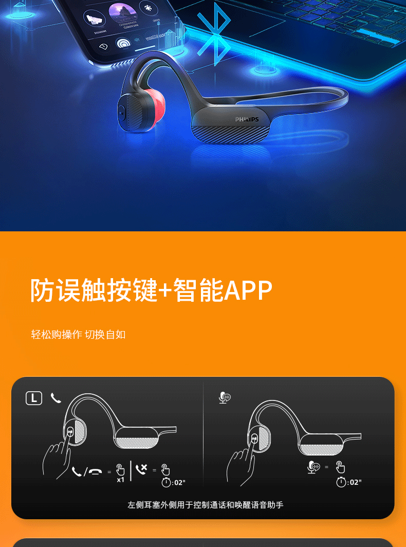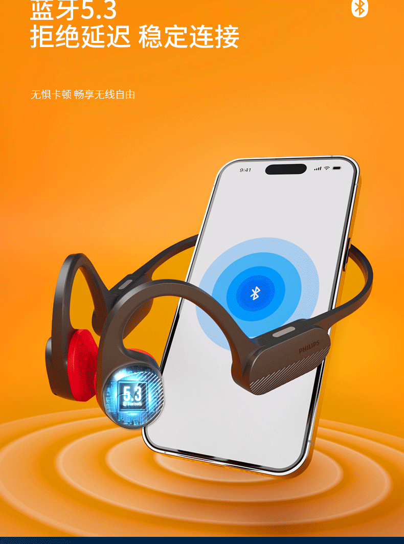 飞利浦(PHILIPS)TAA5608 骨传导蓝牙耳机 黑色